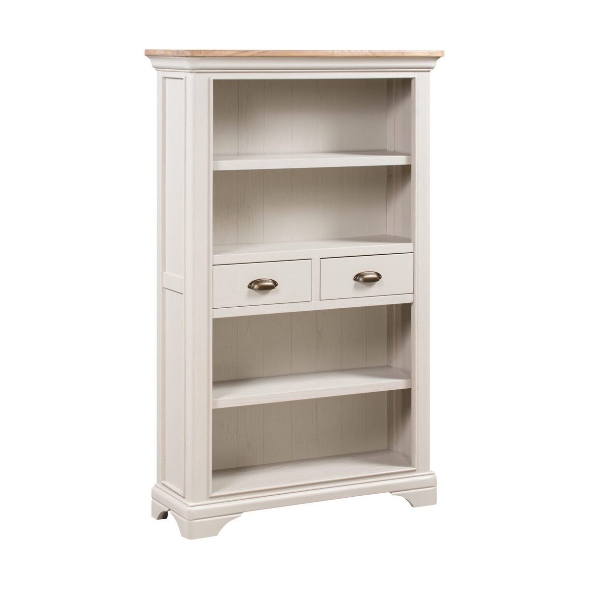 Add a touch of elegance to your living space with the Lottie Painted Bookcase in distressed french oak with a stone painted finish. Beautifully crafted using solid oak and oak veneer, exquisitely finished to a high level that will stand the test of time.