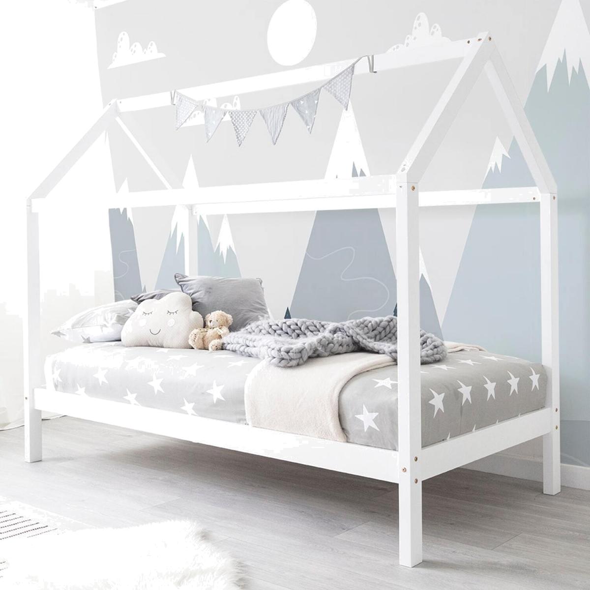 Taking inspiration from childhood treehouses and play areas, we have this single bed which is super cool, and provides a fun sleeping area, play area, den, and reading nook. The cool house-shaped canopy style framework is ideal for decorating to suit your child's bedroom. Drape fabric, attach toys, twist around fairy lights or you could even paint the frame a cool color. The bed frame takes a standard UK single-size mattress (3ft) and sit's low to the ground.
