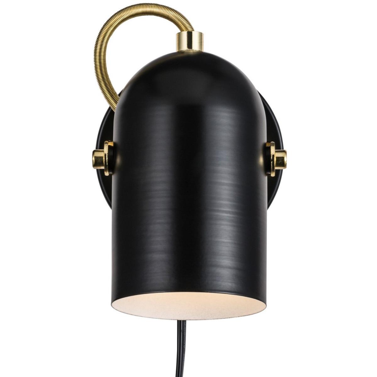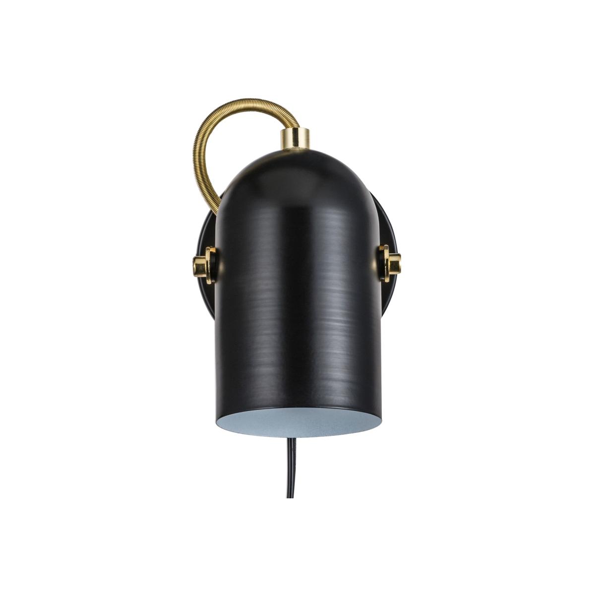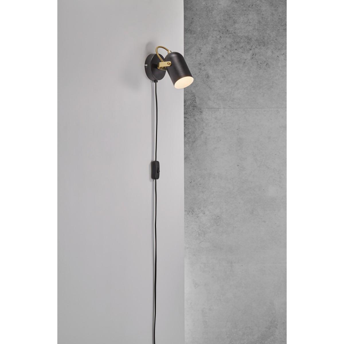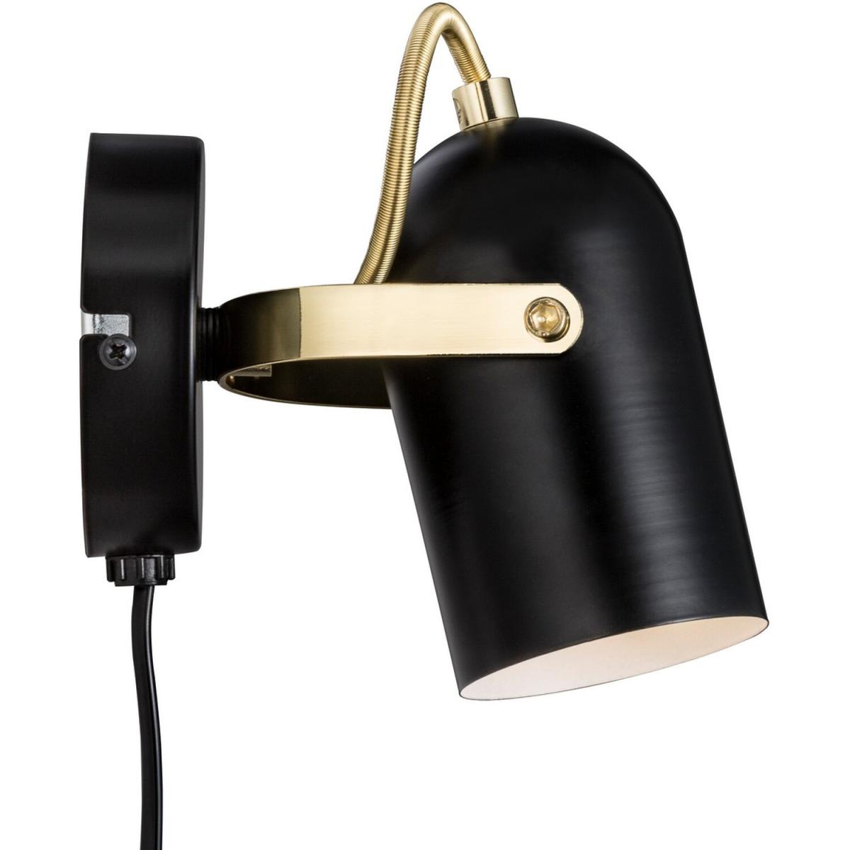Industrial style. Adjustable lamp head for a directional light. Black silk matt finish and polished brass details, Set up a beautiful lighting scheme with the help of the Lotus Single Black Spotlight with brass details. Its industrial style, matt black finish, and polished brass trim make it an easy fixture to pair with existing finishes. It also has an adjustable lamp head for directional lighting.