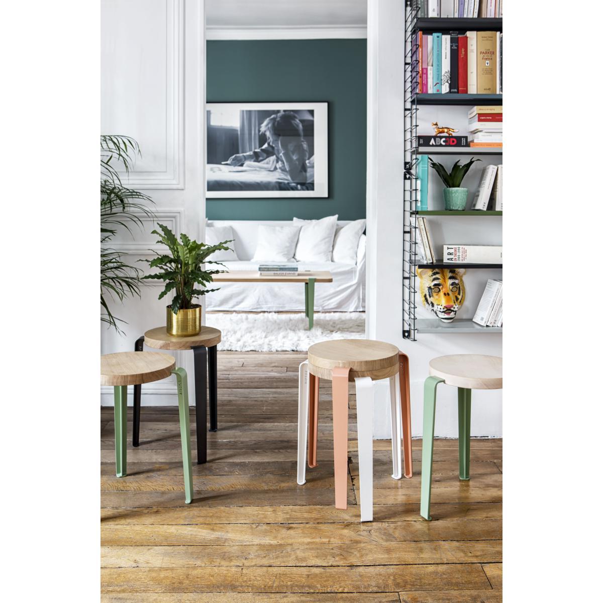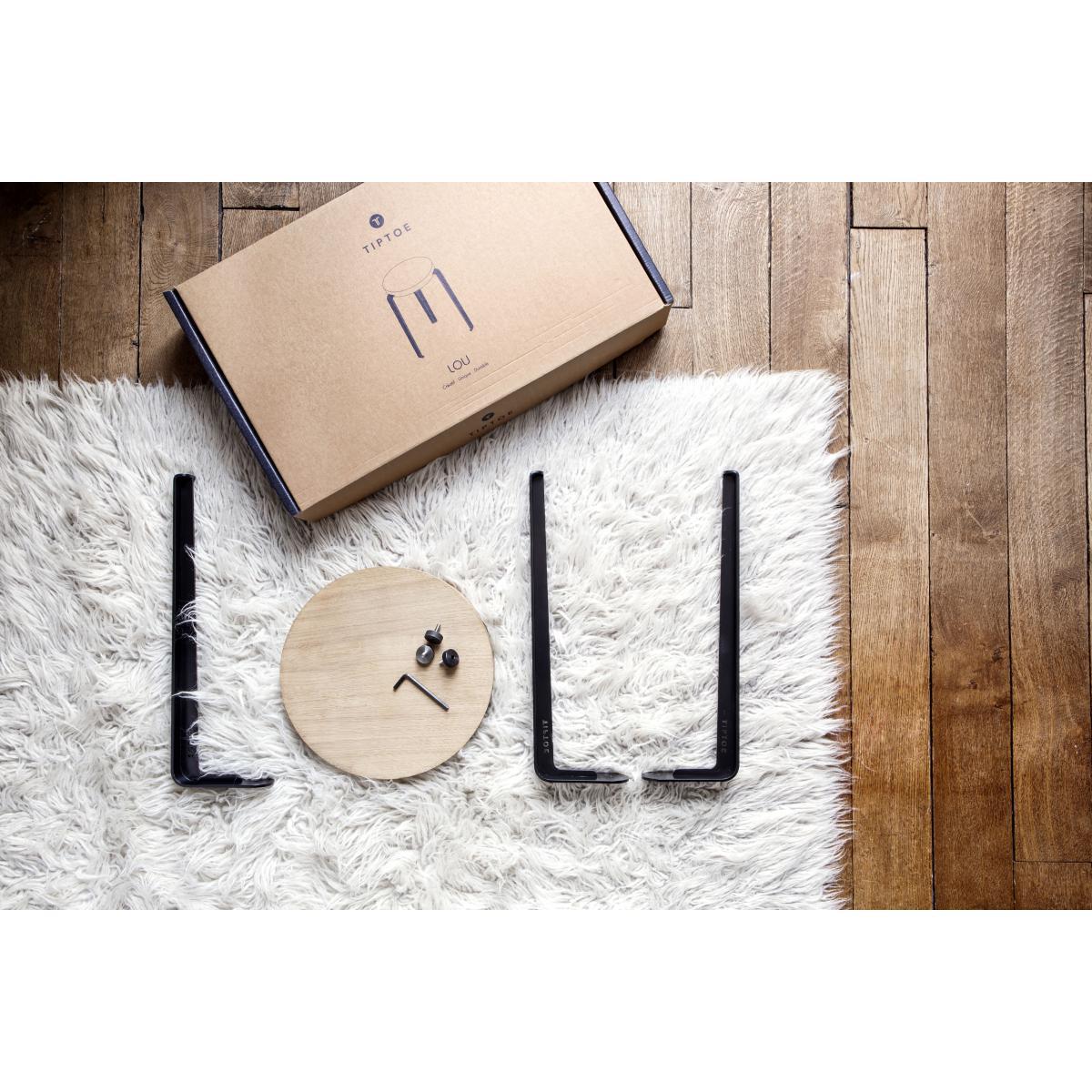 LOU, the colourful, versatile stool. Combining a solid, powder-coated steel base with a solid oak seat, Lou is a piece of furniture with an irreproachable finish, designed to last and withstand the test of time. Lou can serve as a stool, bedside table or small side table. The LOU stool is made with care in stand-out family workshops in France and Europe. The oak seats are machined in Brittany and sanded by hand for a truly unique finish to each part. The wood comes from sustainably managed forests. Delivered disassembled in flat packaging, the Lou stool can be assembled in less than 2 minutes. Fun, tool-free assembly: the steel legs fit directly into the wooden seat and are fastened with three screws. LOU combines smart design, easy installation and resistance to the passage of time that are at the heart of TIPTOE’s DNA. The LOU stool is stackable and 100% European-made. Grégory Cibert, designer of the LOU stool, explains: "With the LOU stool, we wanted to design a completely new object while remaining true to the values that make up TIPTOE's strength: an efficient, colourful design, noble, durable materials, an impeccable finish and 100% European manufacture. The thermo-lacquered steel legs and colour work reinforce the visual identity of the brand without picking up on TIPTOE’s foot clamp concept. ‘’.