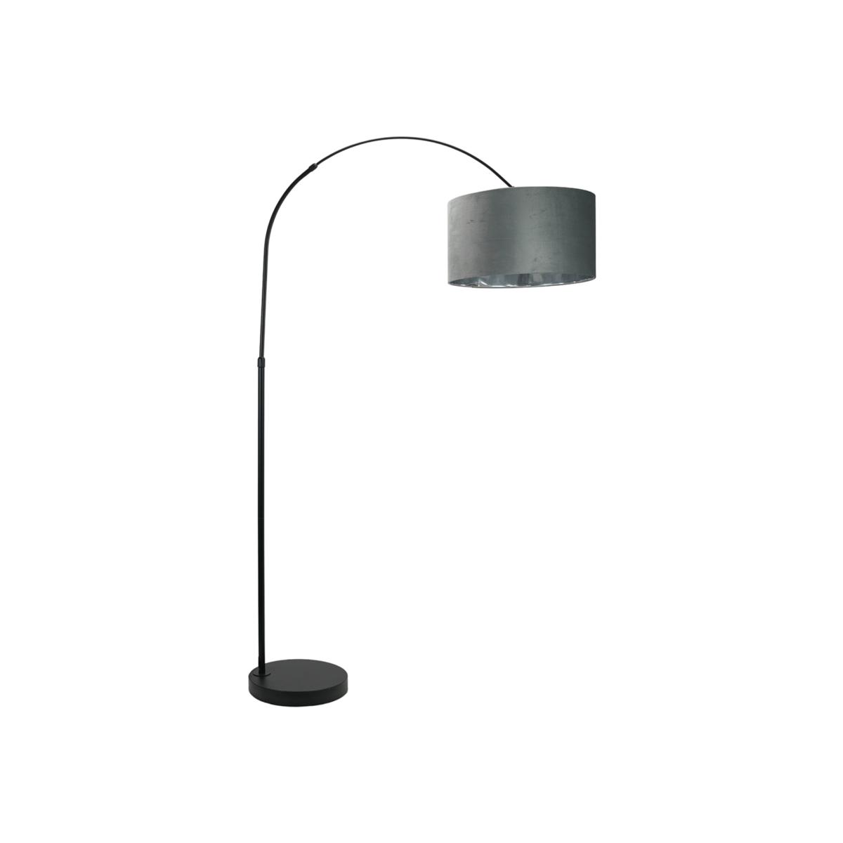Louis Black Arched Floor Lamp with Grey Velvet and Metallic Chrome Inner Shade - Black