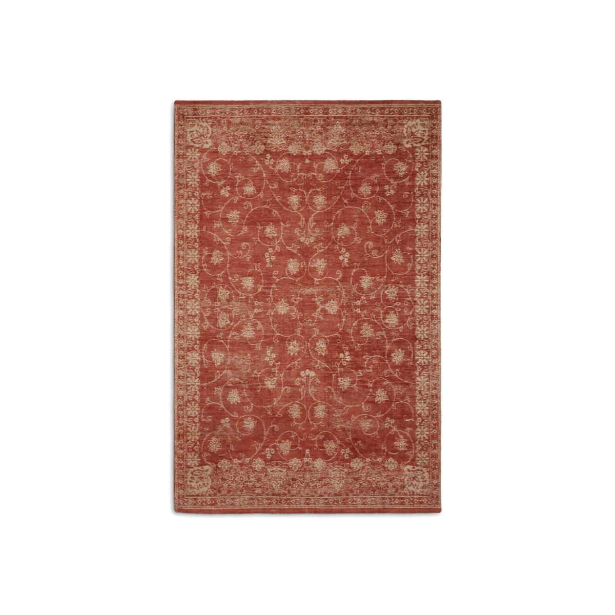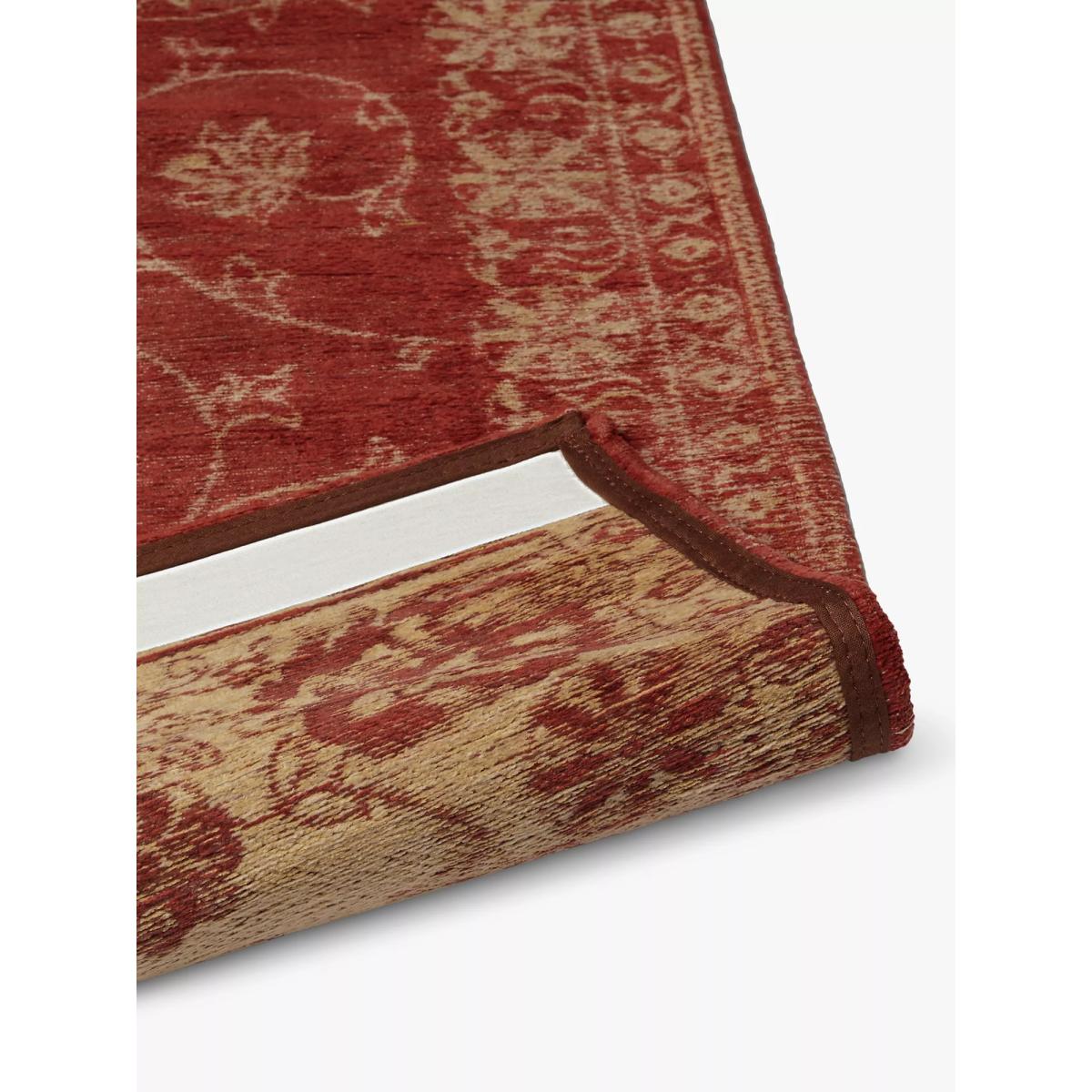 This gorgeous ‘vintage aesthetic’ flat-weave rug features a traditional floral pattern that's finished using terracotta hues to flood your home with warmth. Woven to create a piece that's hardwearing for you to treasure forever. All Louis de Poortere rugs are crafted to be 100% recyclable. About your new rug We recommend John Lewis & Partners Rug Hold Underlay. It prevents your rug from moving underfoot and protects against colour transfer to the floor Vacuum occasionally. When vacuuming your rug, use suction only. Rotating brushes may damage your rug Blot any spills with a clean, dry cloth. Do not rub. Spot clean using a mild soap solution Contains latex so is therefore unsuitable for rooms with underfloor heating Specialist cleaning recommended