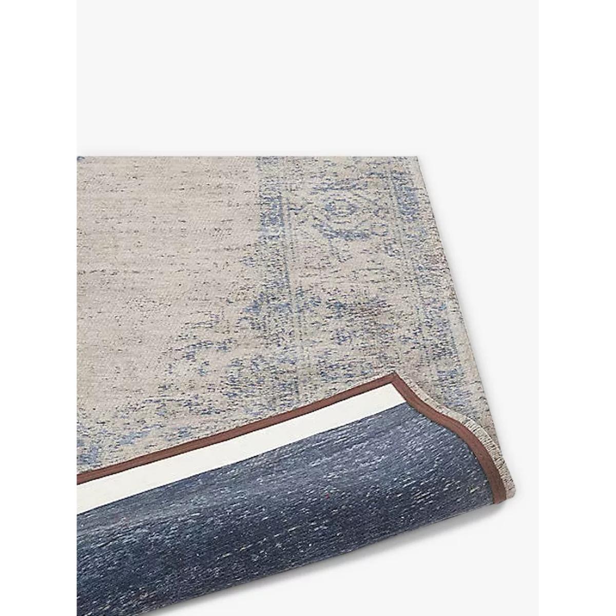 This gorgeous ‘vintage aesthetic’ flat-weave rug takes the timeless appeal of oriental carpeting and gives it a contemporary twist. It features different shades of weave, from clear geometric designs to worn away patches that all blend together beautifully to give you a soft blue rug that’ll live equally well in a contemporary or more traditional décor. All Louis de Poortere rugs are crafted to be 100% recyclable. About your new rug We recommend John Lewis & Partners Rug Hold Underlay. It prevents your rug from moving underfoot and protects against colour transfer to the floor Vacuum occasionally. When vacuuming your rug, use suction only. Rotating brushes may damage your rug Blot any spills with a clean, dry cloth. Do not rub. Spot clean using a mild soap solution Contains latex so is therefore unsuitable for rooms with underfloor heating Specialist cleaning recommended