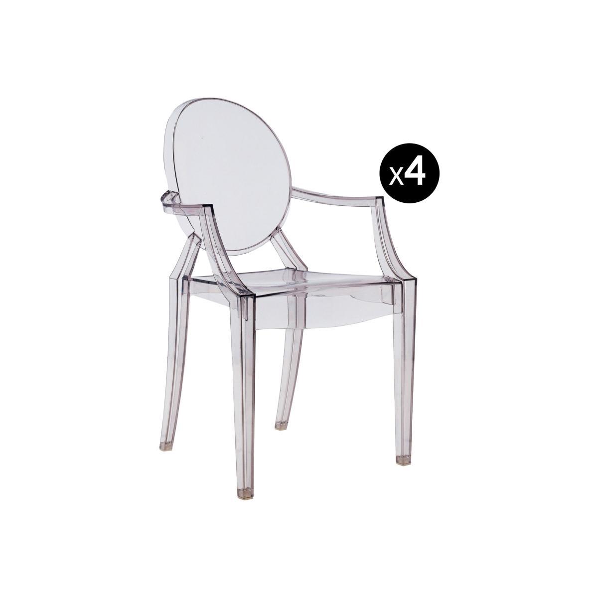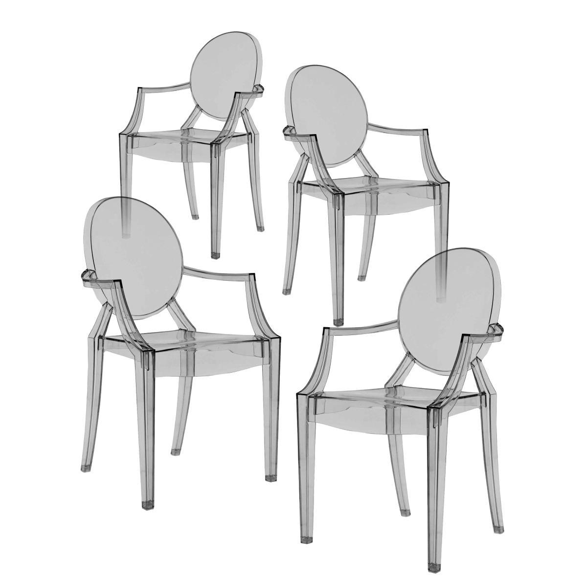 Louis Ghost Stackable armchair - Polycarbonate - Set of 4 by Kartell Grey