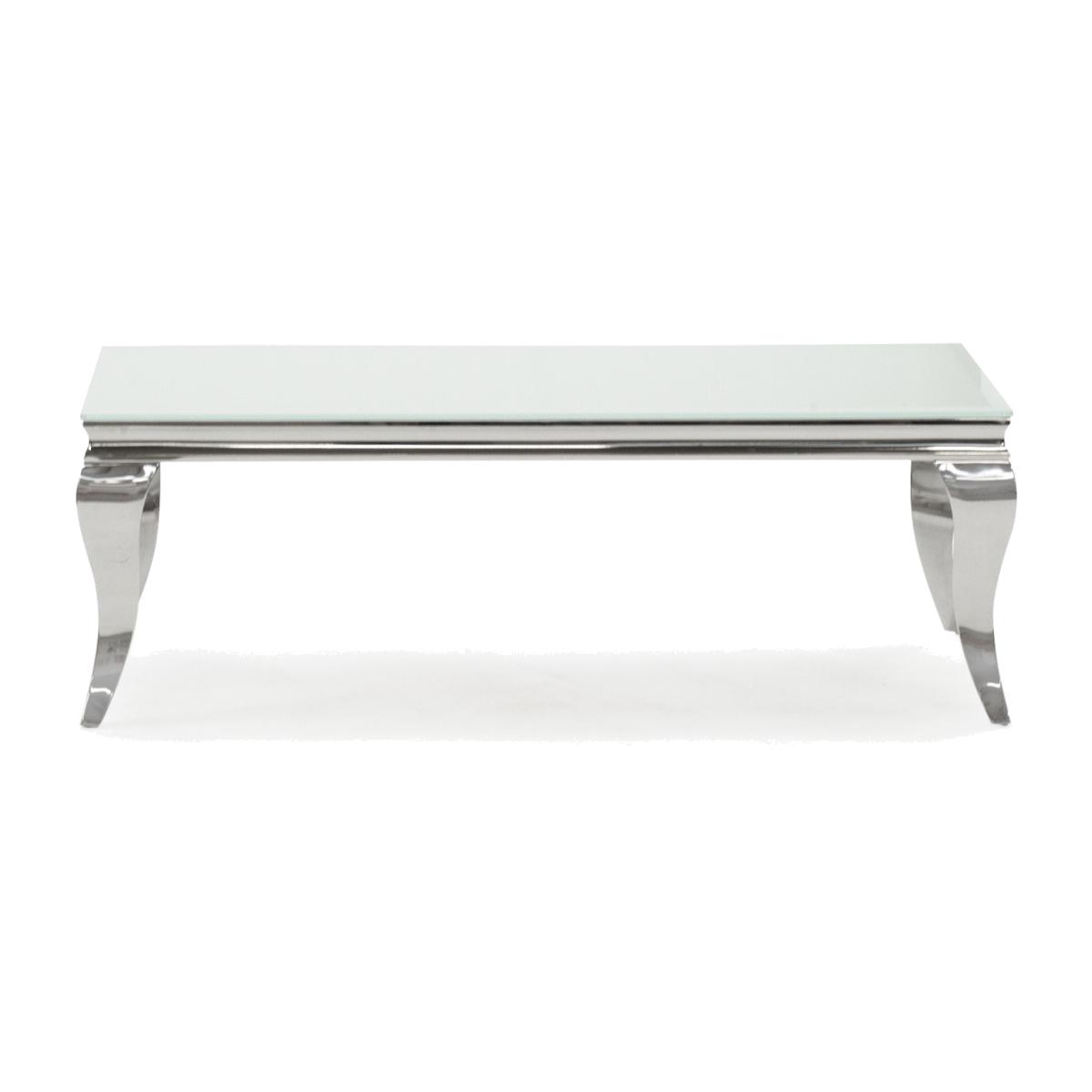This stylish Louis coffee table is sure to make an impression on guests. The unique and elegant design will add a touch of class to your space, creating a stunning focal point for the living room. It features a curvaceous frame which gives the table a feminine touch. The combination of sleek materials come together to create a luxurious look. The steel legs have been polished to perfection whilst the smooth, tempered glass, white table top reflects light beautifully.