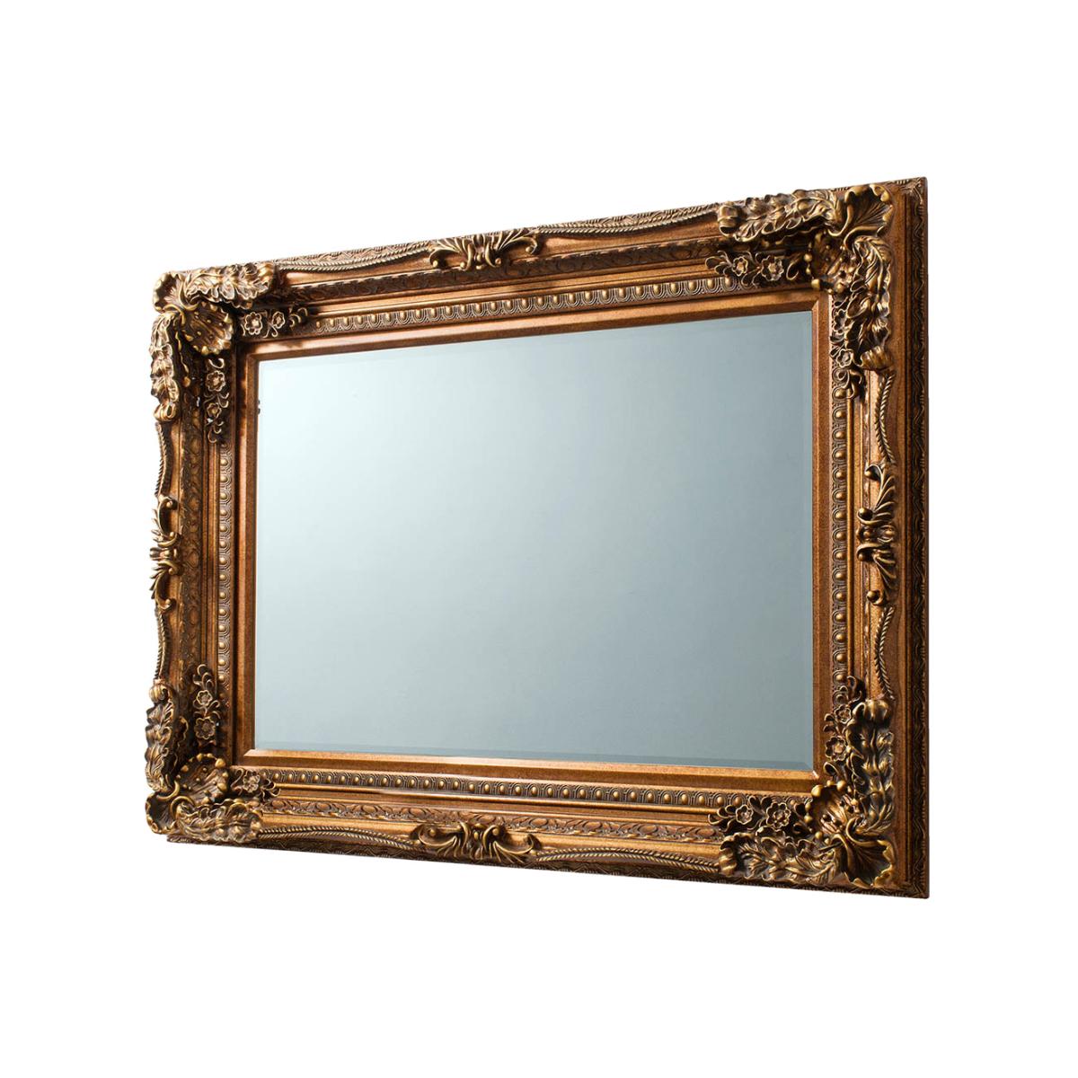 Majestic, statement mirror in a hand applied gold leaf finish. Shape: Rectangle. Material: Glass, Resin, Wood. Colour/Finish: Gold. Mount Type: Wall.