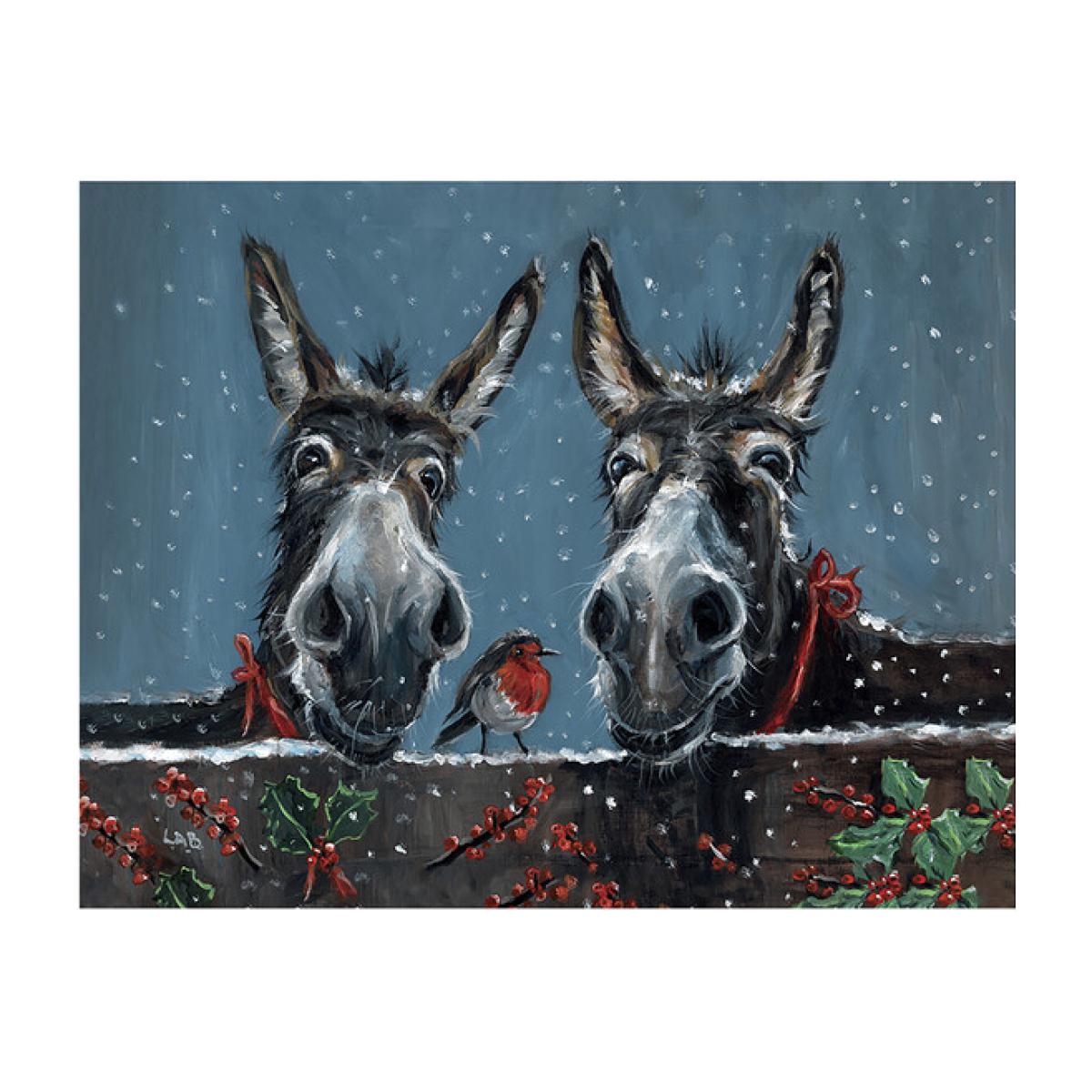 I love this nativity-inspired donkey print for its charming, whimsical appeal-it’s a playful take on Christmas artwork. It works particularly well in casual, cosy interiors like rustic farmhouses or country-style living rooms, where its down-to-earth character can really shine. To style it effectively, consider pairing it with other holiday-themed accents, such as pine garlands or cosy textiles, to create a festive feel. For a more eclectic space, it also pairs nicely with vintage or coastal decor elements, adding a bit of humour and personality. Keep the framing simple, perhaps in natural wood or black, to let the artwork stand out without competing with other decorative features.