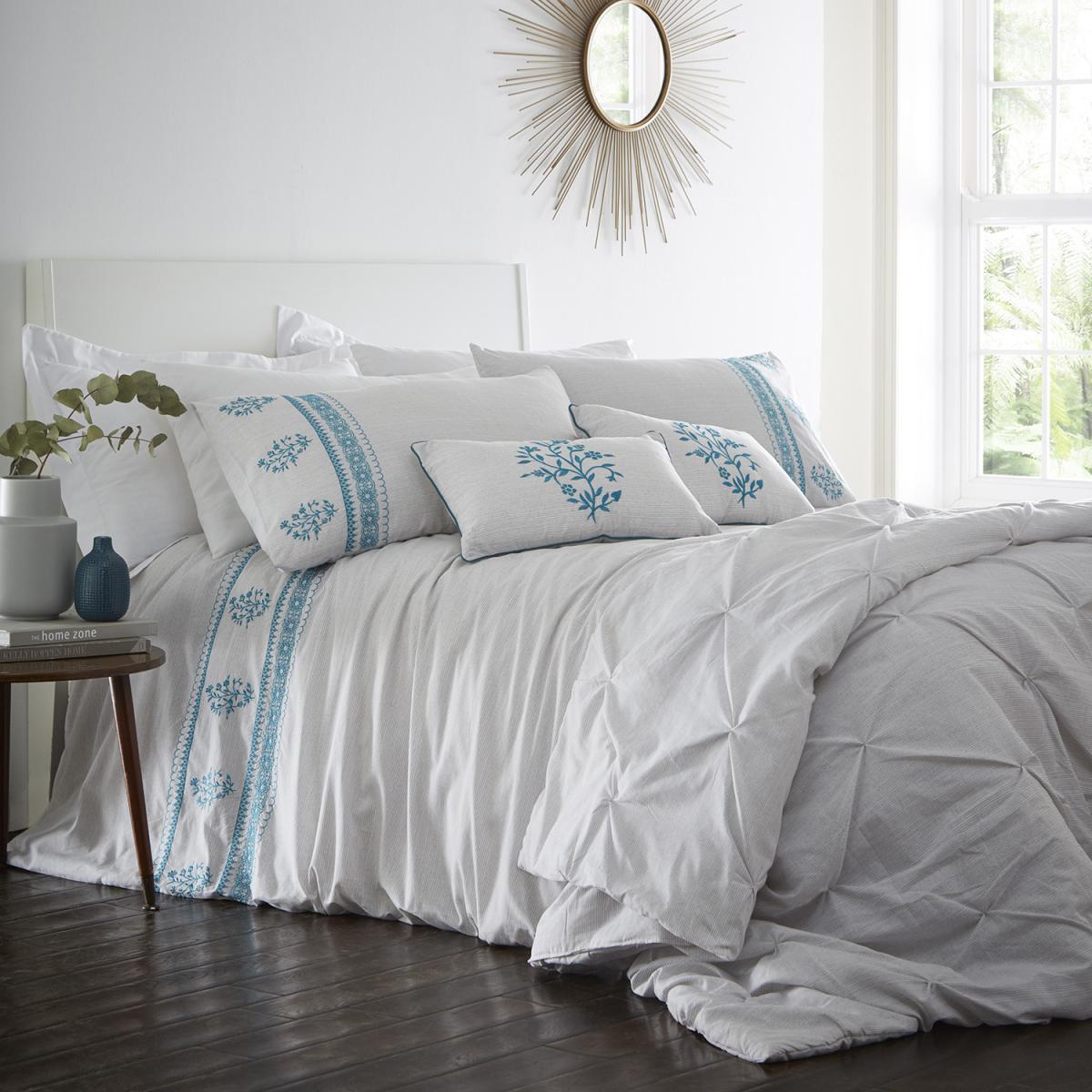 Light and airy with an elegant charm, the Louisiana Duvet Cover and Pillowcase Set features deluxe floral and lace embroidery atop a gentle printed grey pinstripe base. In bright and beautiful colours that stand out in any vintage or country inspired bedroom, you can complete the look of your boudoir and layer up with the matching embroidered cushion. This set comes complete with two matching pillowcases.
