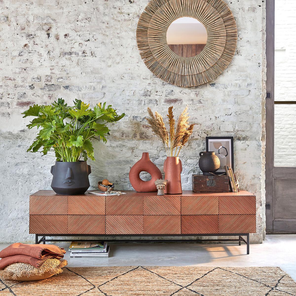I really like this round Mendong mirror for its natural, handcrafted appeal. Its 90cm diameter makes it a versatile statement piece that can anchor a variety of interiors, from boho and tropical styles to more eclectic or rustic spaces. Its woven rattan-like frame adds texture and warmth, making it ideal for rooms that benefit from organic accents. Practical styling tips include hanging it above a console table or in a hallway to create an inviting focal point, while pairing it with similar natural materials or textiles can enhance its relaxed vibe. For a balanced look, consider keeping surrounding decor minimalist to let the mirror truly stand out.