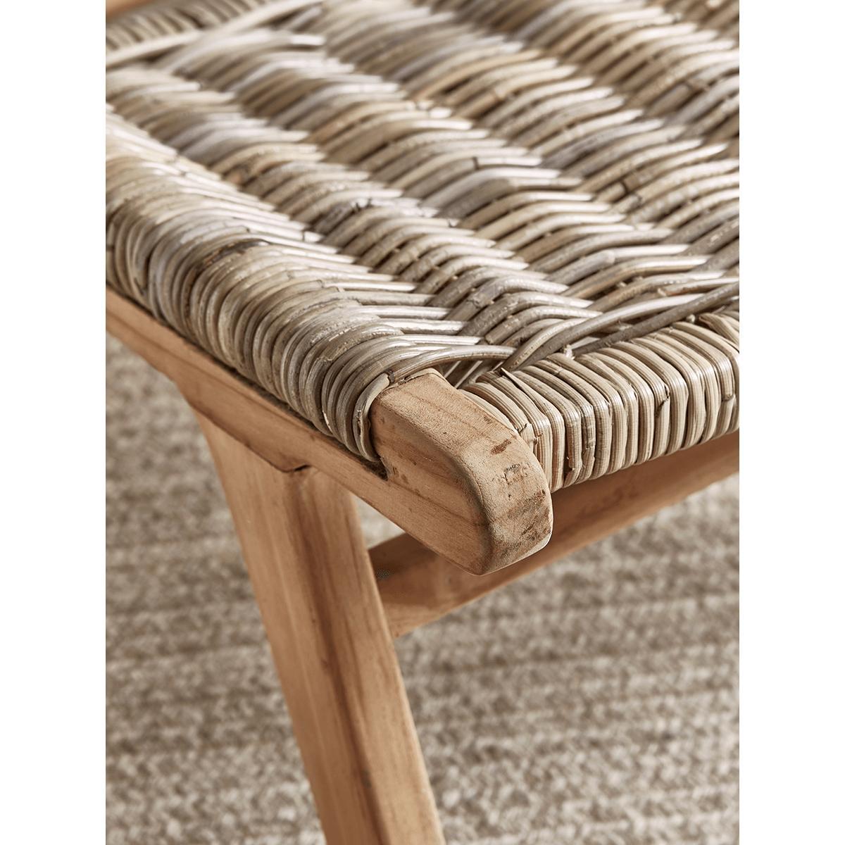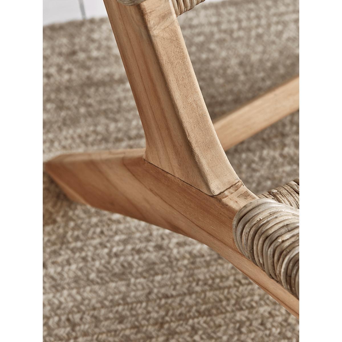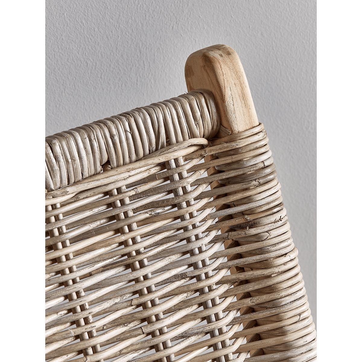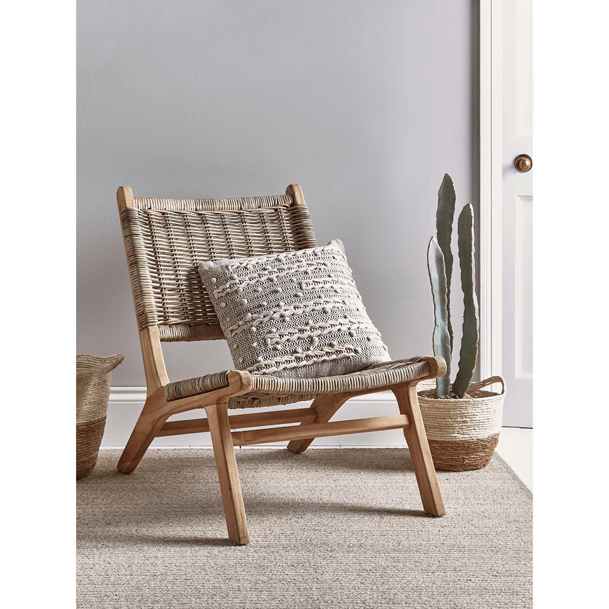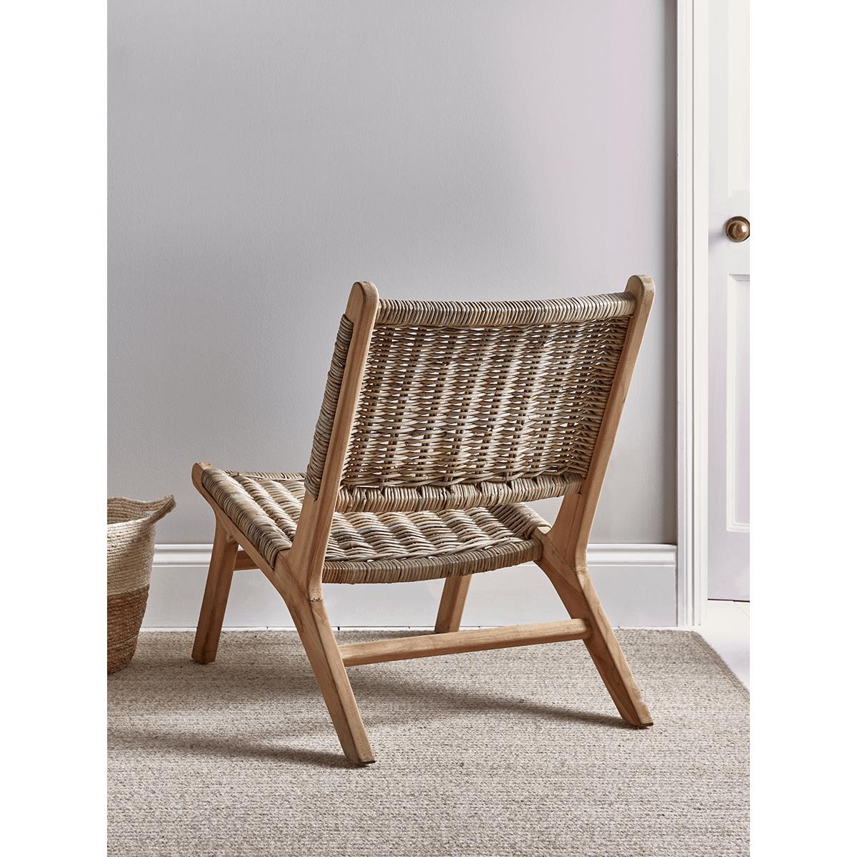 Crafted from rustic round rattan and teak with a simple, elegant silhouette and a comfortable, reclined shape, our stylish occasional chair will complement any space in your home. Pair with a. Cushion. To add cosiness.