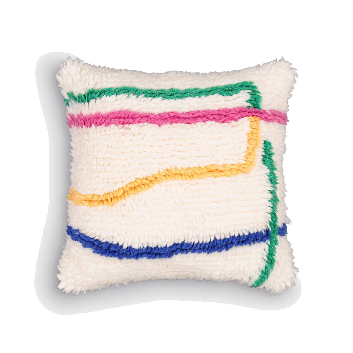 The Lounis cushion cover is inspired by Mediterranean craftsmanship. Add it to your home for warm, original and colourful decor. Product Details • Front tufted 100% wool on 100% cotton material • Plain back • Zip fastening. Size • 45 x 45cm • OEKO-TEX® Standard 100. Standard 100 certification by OEKO-TEX® tests textile products for harmful substances via an independent, international label.