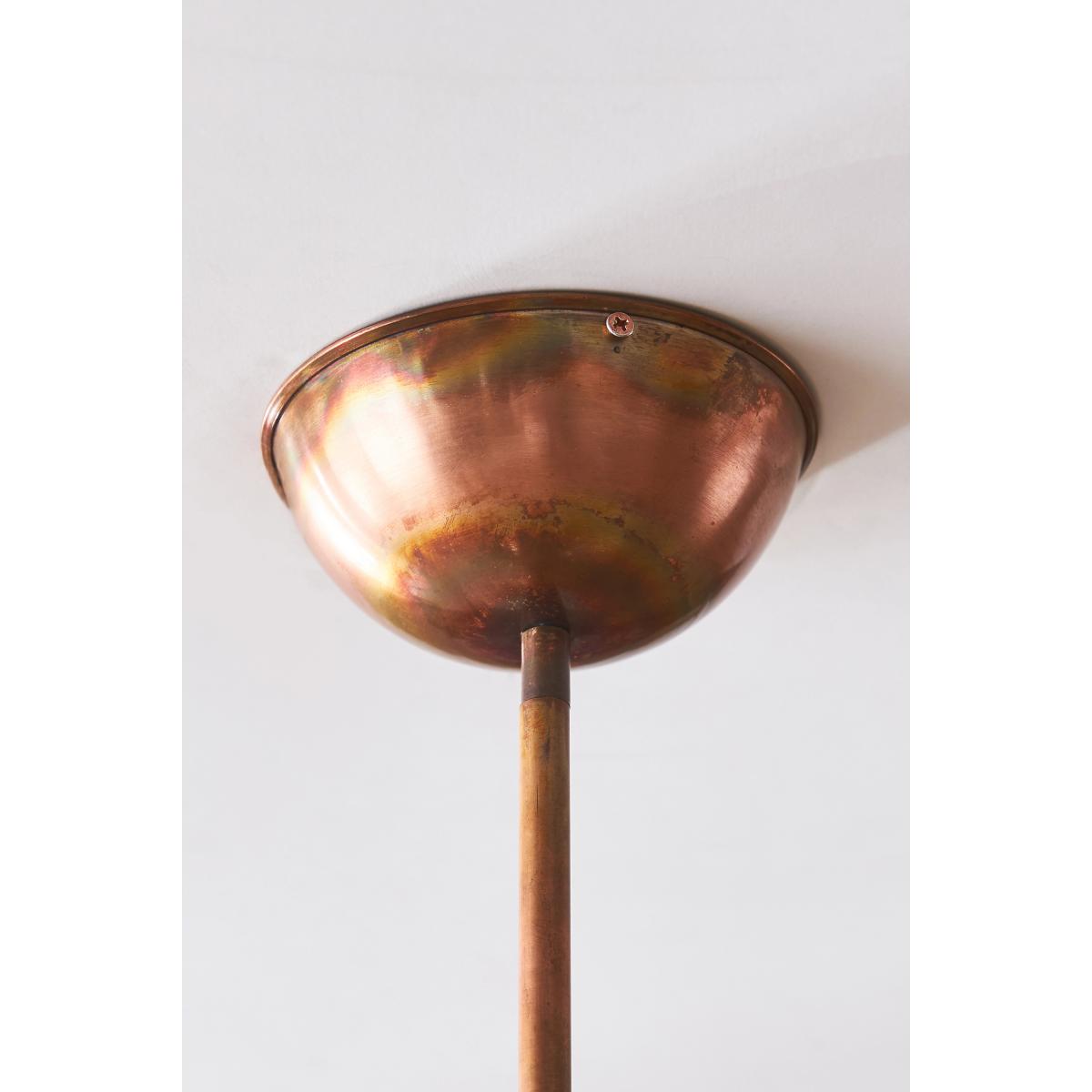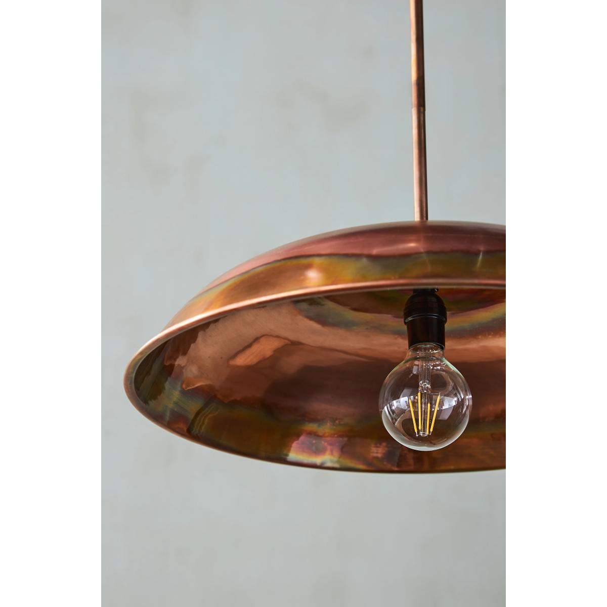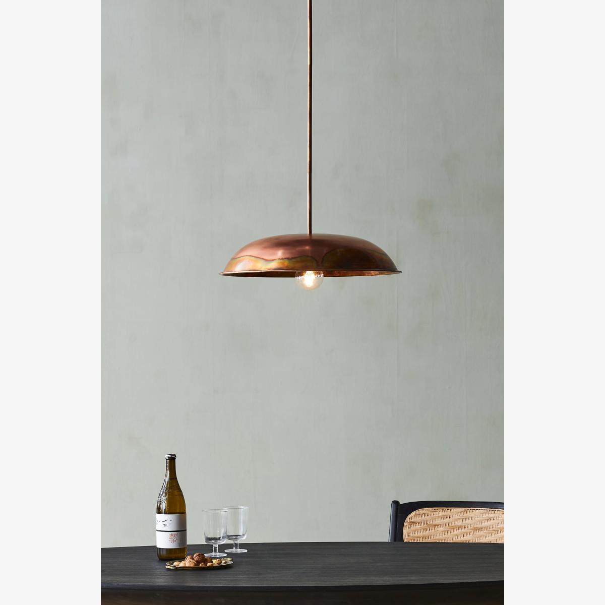 Crafted from brass, with a unique burnt copper finish, this eye-catching pendant reminds us of the dunes and canyons of the American southwest. *This item is CE listed, meaning it has been tested and approved to meet the government-regulated safety standards for the UK. Use with electrical outlets of 230v or lower, as anything higher can cause fire or injury. If you're purchasing this item for use outside of the United Kingdom, employ the adapter and voltage converter suited for your country* * Exclusively at Anthropologie * Iron, stainless steel, brass; brass and burnt copper finish * Hardwired; professional installation recommended * Can be installed with a dimmer * Cannot be installed on a sloped ceiling * Includes mounting plate and pole kit * One light socket * We recommend using type E26 bulbs * CE listed * Imported