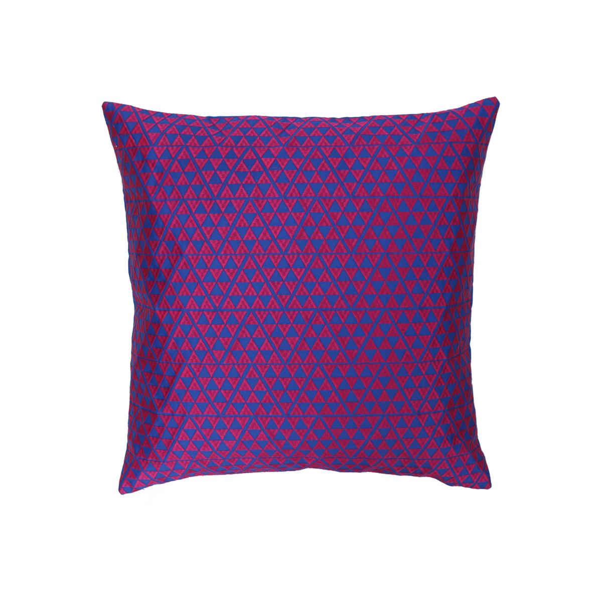 This cushion is a great choice for adding a pop of colour and texture to modern or eclectic interiors. I love its bold geometric pattern and vibrant skydiver and camellia tones, which work particularly well in living rooms or bedrooms that embrace colour and personality. As a stylist, I’d suggest pairing it with neutral sofas or armchairs to let the design stand out, or mixing it with other patterned textiles for an on-trend layered look. Practical styling tips include using it as an accent piece on a statement chair or sofa, and it’s versatile enough to work in both contemporary and retro-inspired spaces. Its sizeable form and detailed jacquard weave also add a touch of sophistication to casual, relaxed settings.