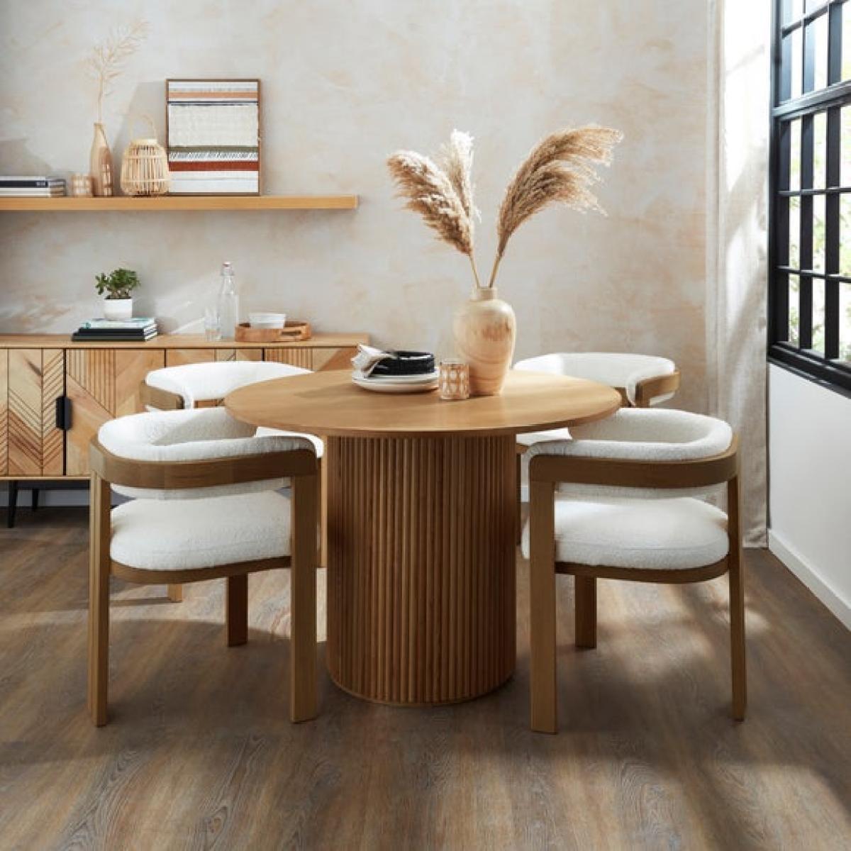I really like the Lovato dining chair - the boucle fabric adds a cosy, inviting feel that’s perfect for both modern and Scandi-style interiors. It works well in neutral colour schemes or as an accent piece in more colourful settings, bringing texture and softness to the dining area. For styling tips, pair it with a wooden or marble table to highlight its tactile qualities, and don't be afraid to mix it with other fabrics or materials for an eclectic look. It’s practical too, as boucle tends to be quite forgiving with everyday wear, making it a smart choice for both casual meals and more formal dinners. Overall, it’s a versatile piece that can elevate a simple dining space while remaining comfortable and user-friendly.