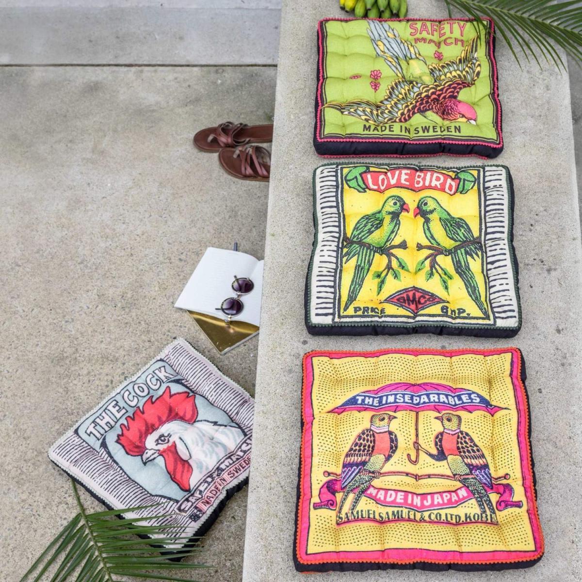 With designs inspired by colourful retro matchboxes, these quirky pinched seat pads will instantly uplift any space. Place on kitchen chairs, armchairs and benches to add a layer of sumptuous comfort with a vibrant retro flair. Exclusive to G&G.