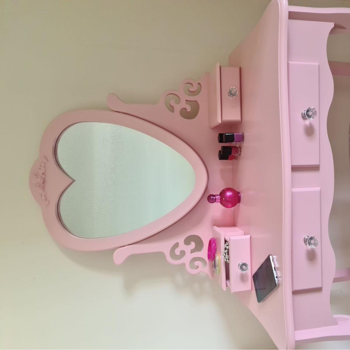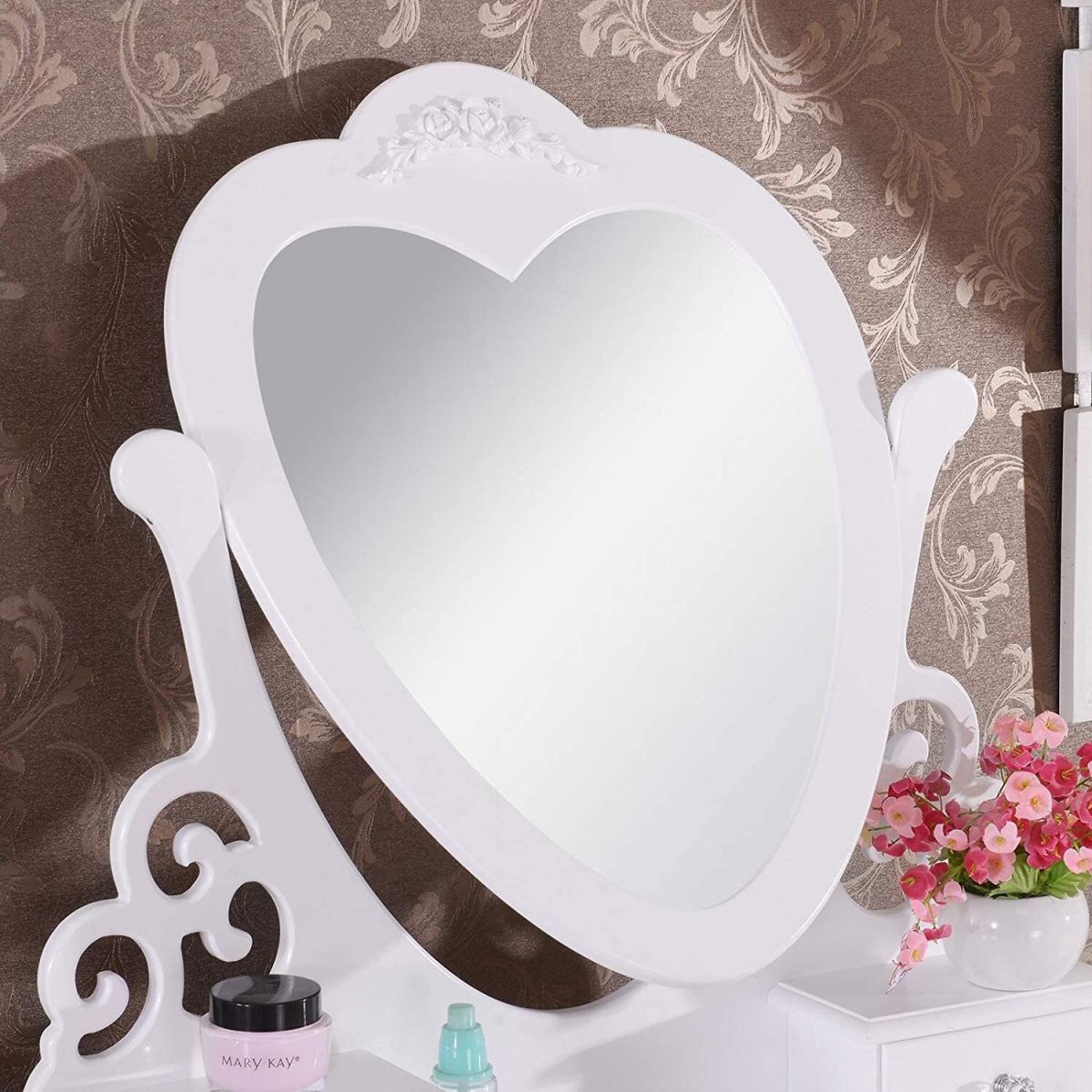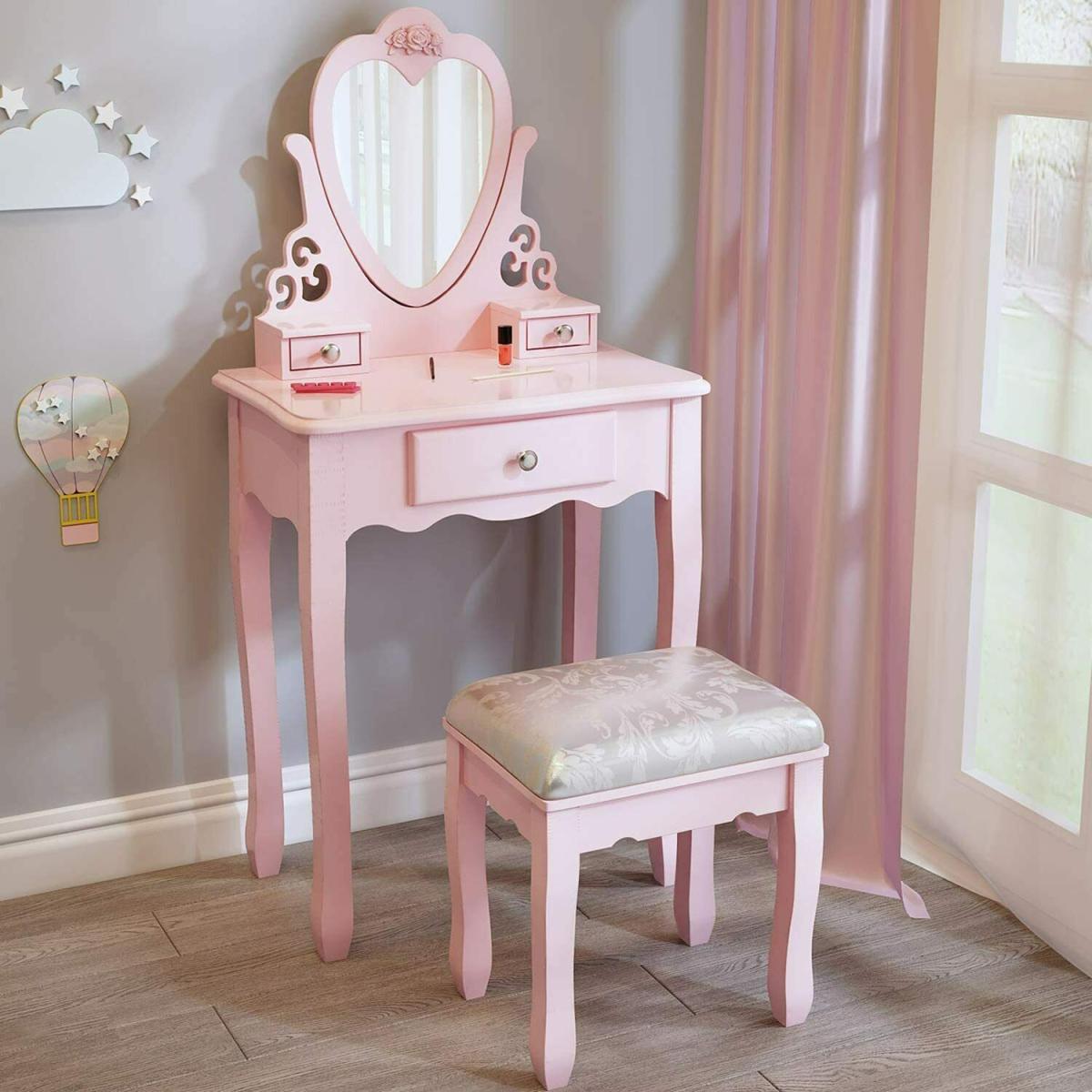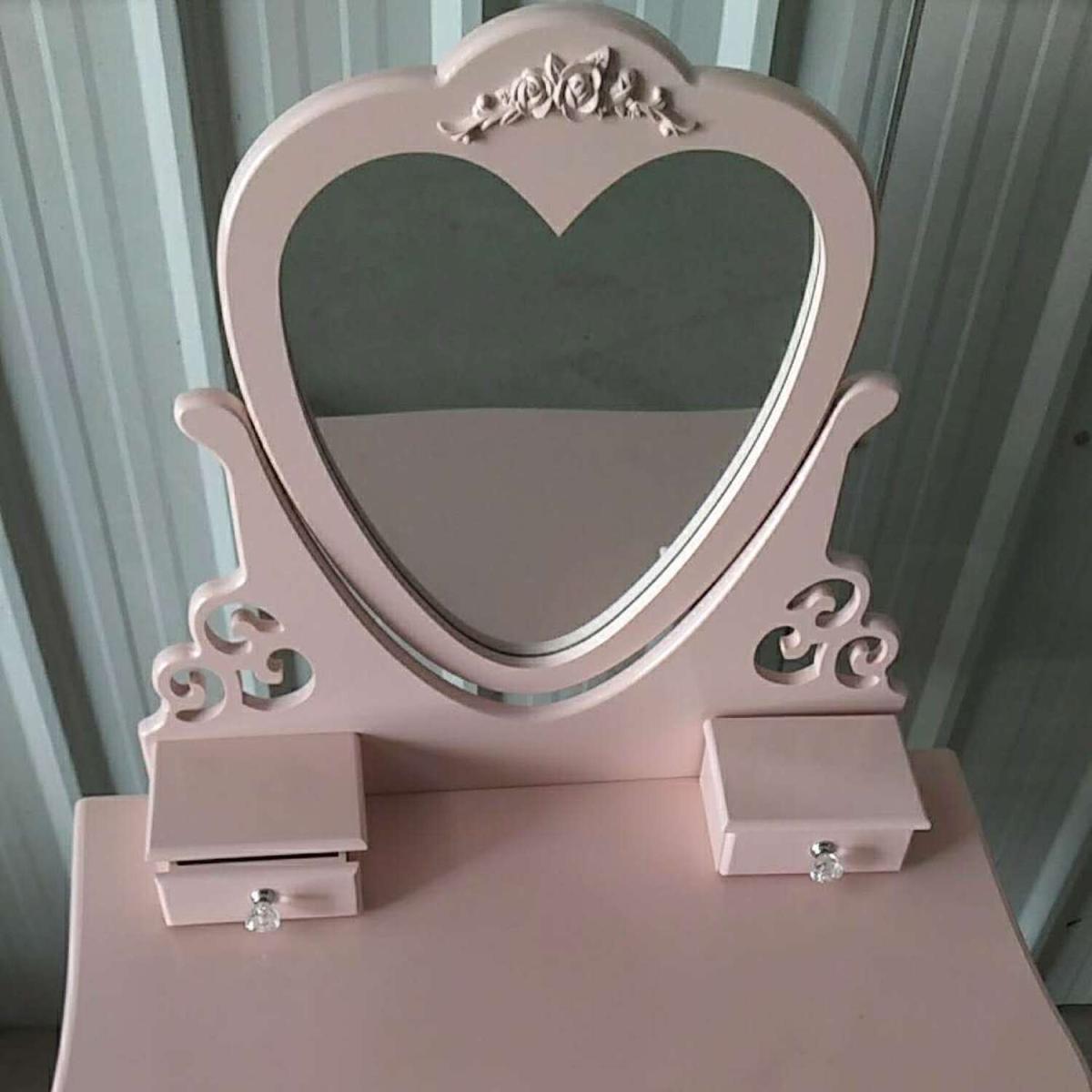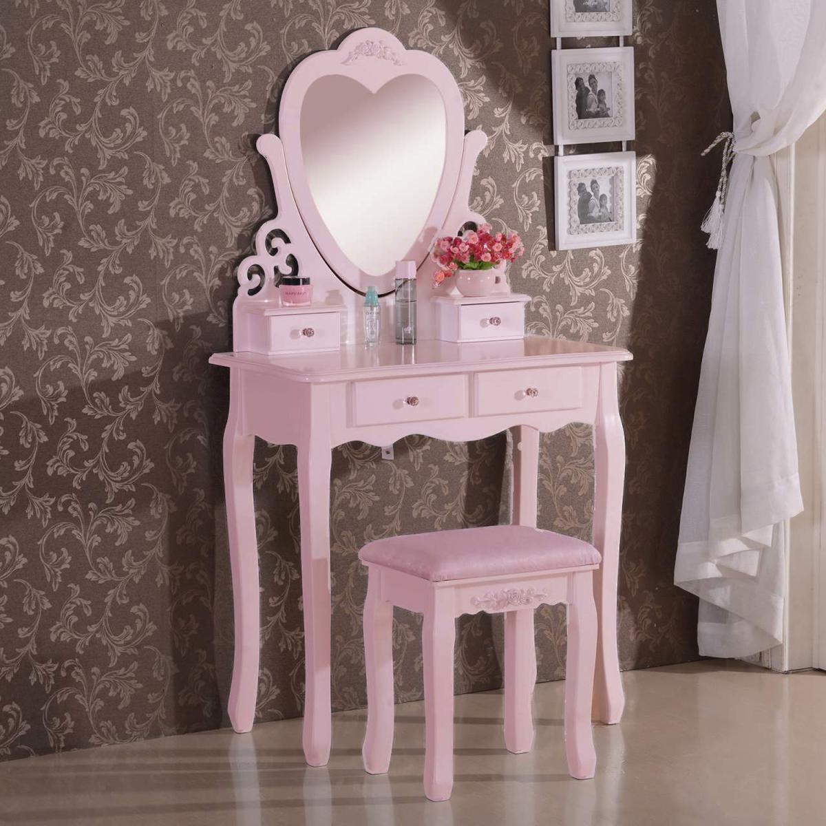Love Heart Dressing Table With Mirror and Stool - Pink