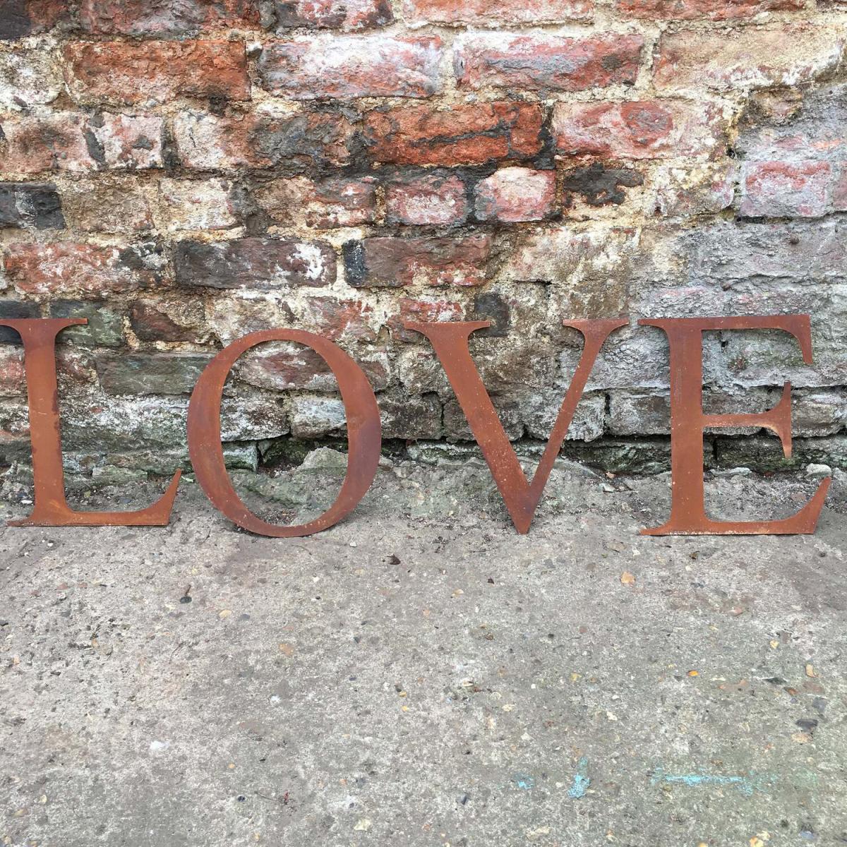 LOVE Made out of 4 of our rustic metal letters. Each letter is 12 inches high. Lovingly rusted by the sun, wind and rain in Norfolk! These are great for any home, garden, shop sign, offices, cafes, bars, cafe or vintage wedding. These look great standing on a sideboard/dresser or these can be easily fixed down to any surface with a good strong adhesive, another simple way to hang them is just drill a small hole through the letter and fix to the wall with a screw. Another easy way to hang them is to use command strips.