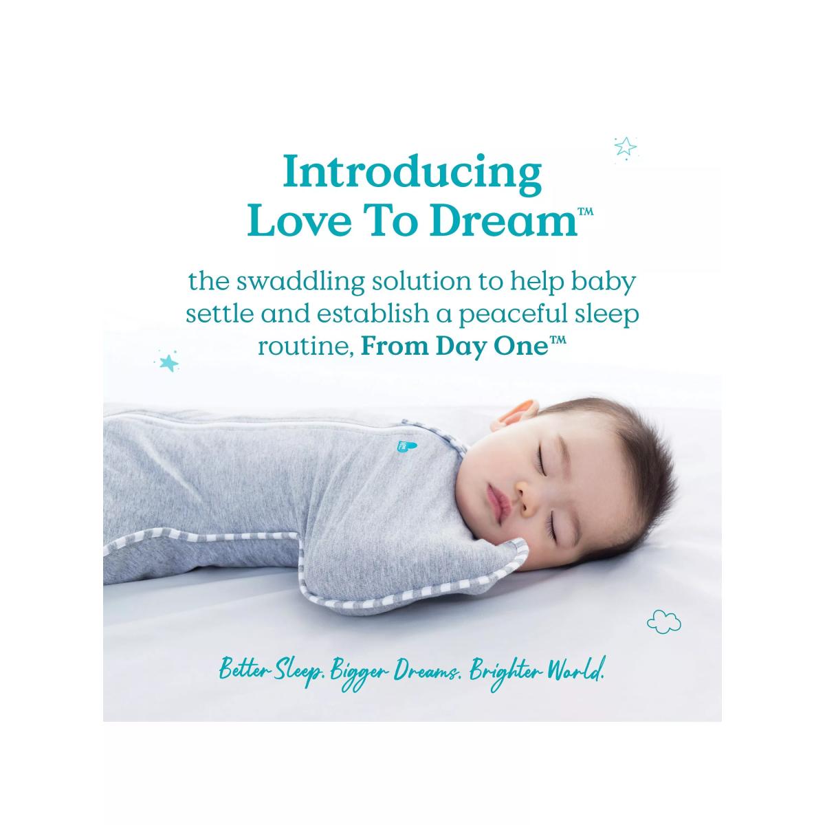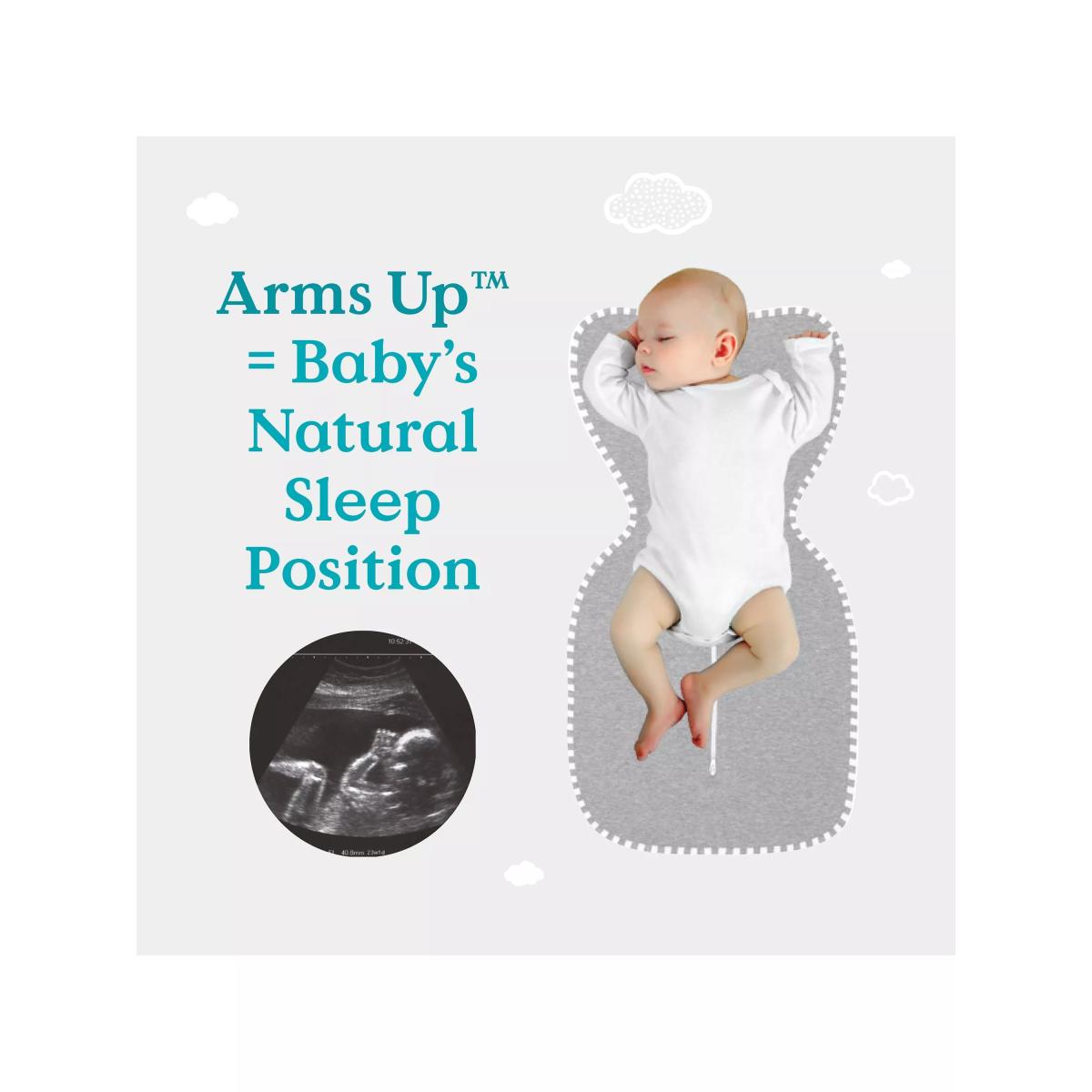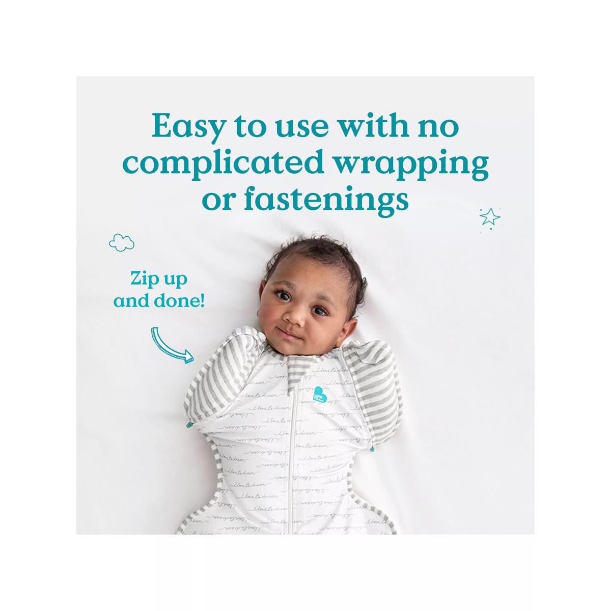 Combining the benefits of traditional swaddles and the ease and safety of a sleepsuit, the Love To Dream Swaddle Up™ All seasons mild is the perfect tool to reduce sleepless nights. The soft, clingy fabric wraps around baby to replicate the feeling of being in the womb, whilst the ARMS UP™ hip-healthy design aids their natural sleeping position. Key Features: Easy to use - legs in, arms in and zip up, with the two-way zip allowing you to change your baby's nappy without waking them Designed based on research in babies' sleep and development in the womb with the ARMS UP™ position allowing babies to soothe themselves to get to sleep, by touching their face and sucking on their hands. The design is safe for new-borns hip development and is acknowledged as a “hip healthy” product by the International Hip Dysplasia Institute. Made from a triple-layered construction - featuring 2 layers of fabric, plus 1 layer of triple stitched wadding. It has an Original Jersey knit outer with cotton quilted wadding in the middle and a soft stretch cotton lining as the inner, which is soft on baby’s skin. The super soft Original Jersey knit is also used on the upper body, sleeves, and cuffs for additional comfort. The 100% natural cotton wadding provides softness, and effective insulation, and helps retain heat for extra warmth. Size Weight Age Height Newborn 2.2-3.8kg 0-1 months 60cm Small 3.4-6kg 1-3 month 62cm Medium 6-8.5kg 3-6 month 68cm Large 11-14kg 9-12 month 91cm Please note these are recommendations only as all babies are different.
