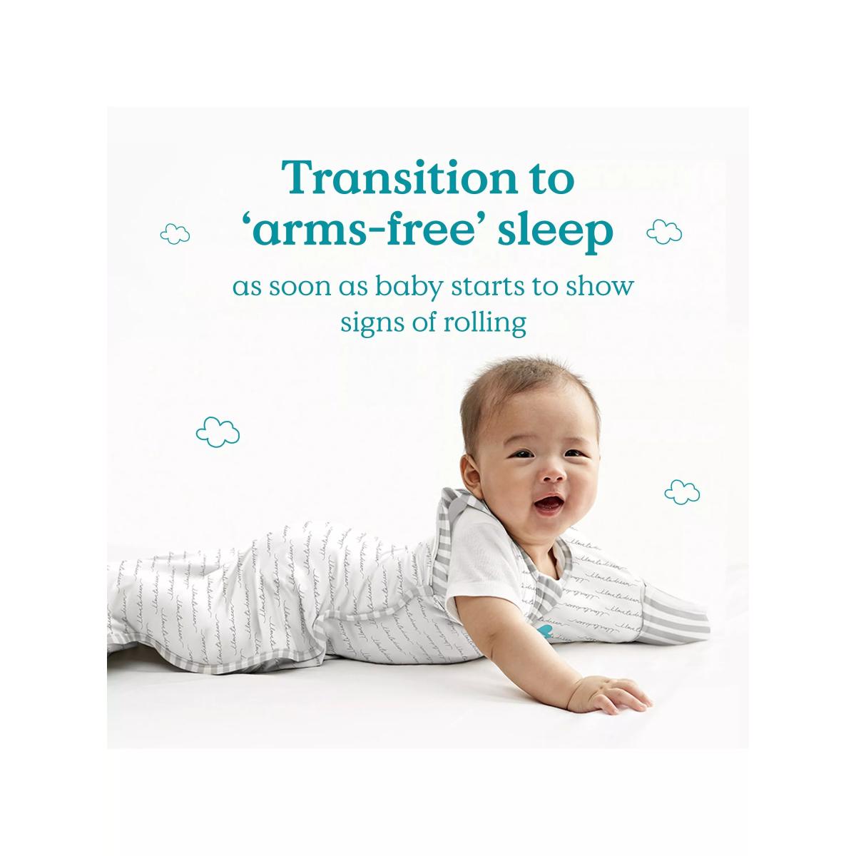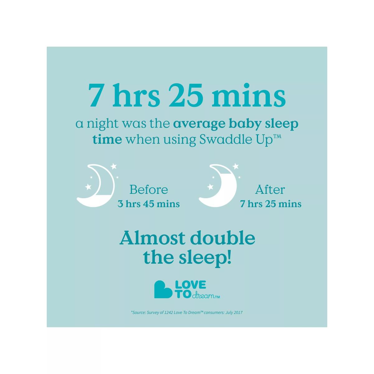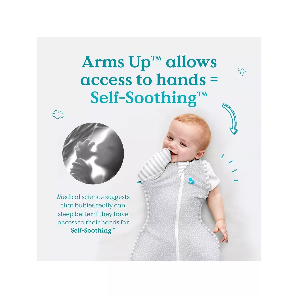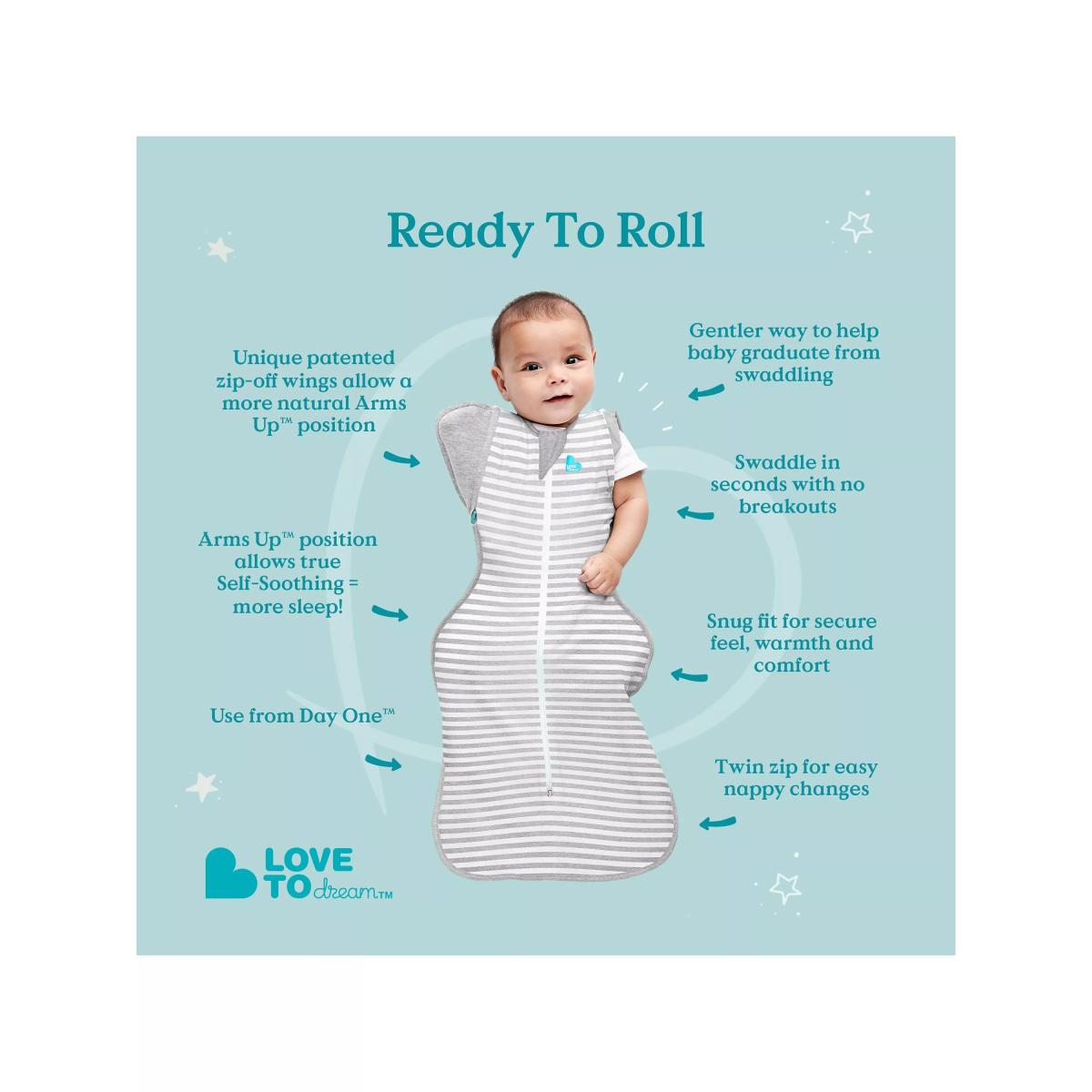 Combining the benefits of traditional swaddles and the ease and safety of a sleepsuit, the Love To Dream Swaddle Up™ All seasons mild is the perfect tool to reduce sleepless nights. The soft, clingy fabric wraps around baby to replicate the feeling of being in the womb, whilst the ARMS UP™ hip-healthy design aids their natural sleeping position. Key Features: Easy to use - legs in, arms in and zip up, with the two-way zip allowing you to change your baby's nappy without waking them Designed based on research in babies' sleep and development in the womb with the ARMS UP™ position allowing babies to soothe themselves to get to sleep, by touching their face and sucking on their hands. The design is safe for new-borns hip development and is acknowledged as a “hip healthy” product by the International Hip Dysplasia Institute. Made from a triple-layered construction - featuring 2 layers of fabric, plus 1 layer of triple stitched wadding. It has an Original Jersey knit outer with cotton quilted wadding in the middle and a soft stretch cotton lining as the inner, which is soft on baby’s skin. The super soft Original Jersey knit is also used on the upper body, sleeves, and cuffs for additional comfort. The 100% natural cotton wadding provides softness, and effective insulation, and helps retain heat for extra warmth. Size Weight Age Height Newborn 2.2-3.8kg 0-1 months 60cm Small 3.4-6kg 1-3 month 62cm Medium 6-8.5kg 3-6 month 68cm Large 11-14kg 9-12 month 91cm Please note these are recommendations only as all babies are different.