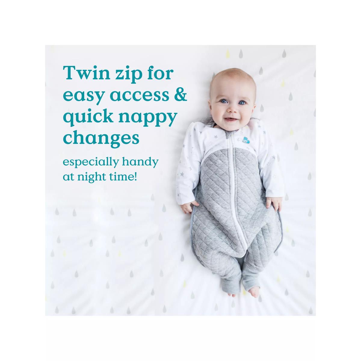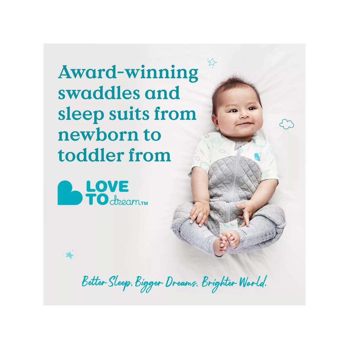 Combining the benefits of traditional swaddles and the ease and safety of a sleepsuit, the Love To Dream Swaddle Up™ Warm is the perfect tool to reduce sleepless nights. The soft, clingy fabric wraps around baby to replicate the feeling of being in the womb, whilst the ARMS UP™ hip-healthy design aids their natural sleeping position. Key Features: Easy to use - legs in, arms in and zip up, with the two-way zip allowing you to change your baby's nappy without waking them Designed based on research in babies' sleep and development in the womb with the ARMS UP™ position allowing babies to soothe themselves to get to sleep, by touching their face and sucking on their hands. The design is safe for new-borns hip development and is acknowledged as a “hip healthy” product by the International Hip Dysplasia Institute. Made from a triple-layered construction - featuring 2 layers of fabric, plus 1 layer of triple stitched wadding. It has an Original Jersey knit outer with cotton quilted wadding in the middle and a soft stretch cotton lining as the inner, which is soft on baby’s skin. The super soft Original Jersey knit is also used on the upper body, sleeves, and cuffs for additional comfort. The 100% natural cotton wadding provides softness, and effective insulation, and helps retain heat for extra warmth.