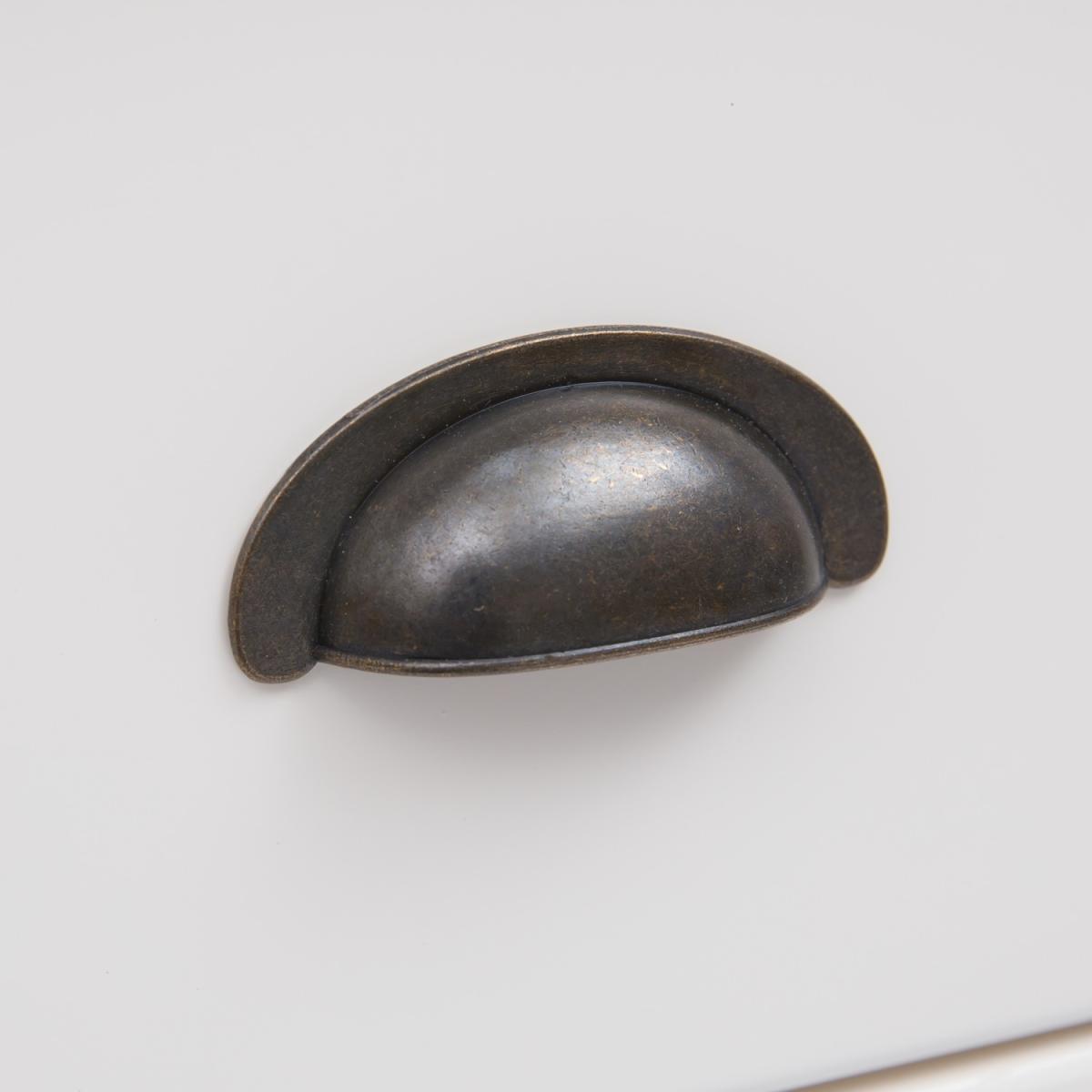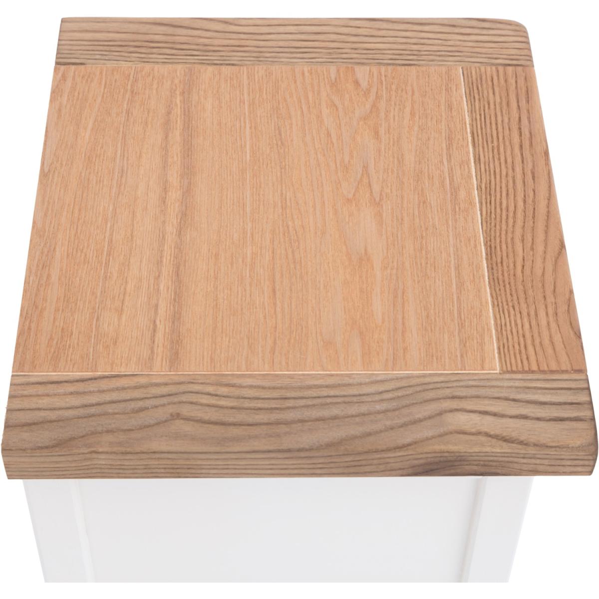 I’m a big fan of this little off-white bedside table with its solid oak top and antique brass cup handle - it brings a crisp, unfussy look without feeling cold. Its compact proportions make it ideal for smaller bedrooms or guest rooms, and the natural wood top adds warmth that works especially well in Scandi, modern farmhouse or coastal schemes. For styling, keep the tabletop uncluttered: a slim brass-based lamp, a small scented candle and a single sprig of greenery in a simple vase are all you need. Tuck your phone charger and bedtime reads in the drawer to maintain those clean lines, and if you’re using it in a living area as a side table, swap the lamp for a low-profile art piece or a stack of design books.