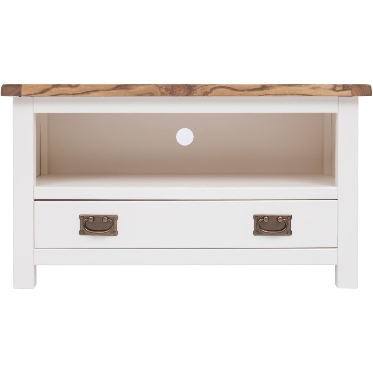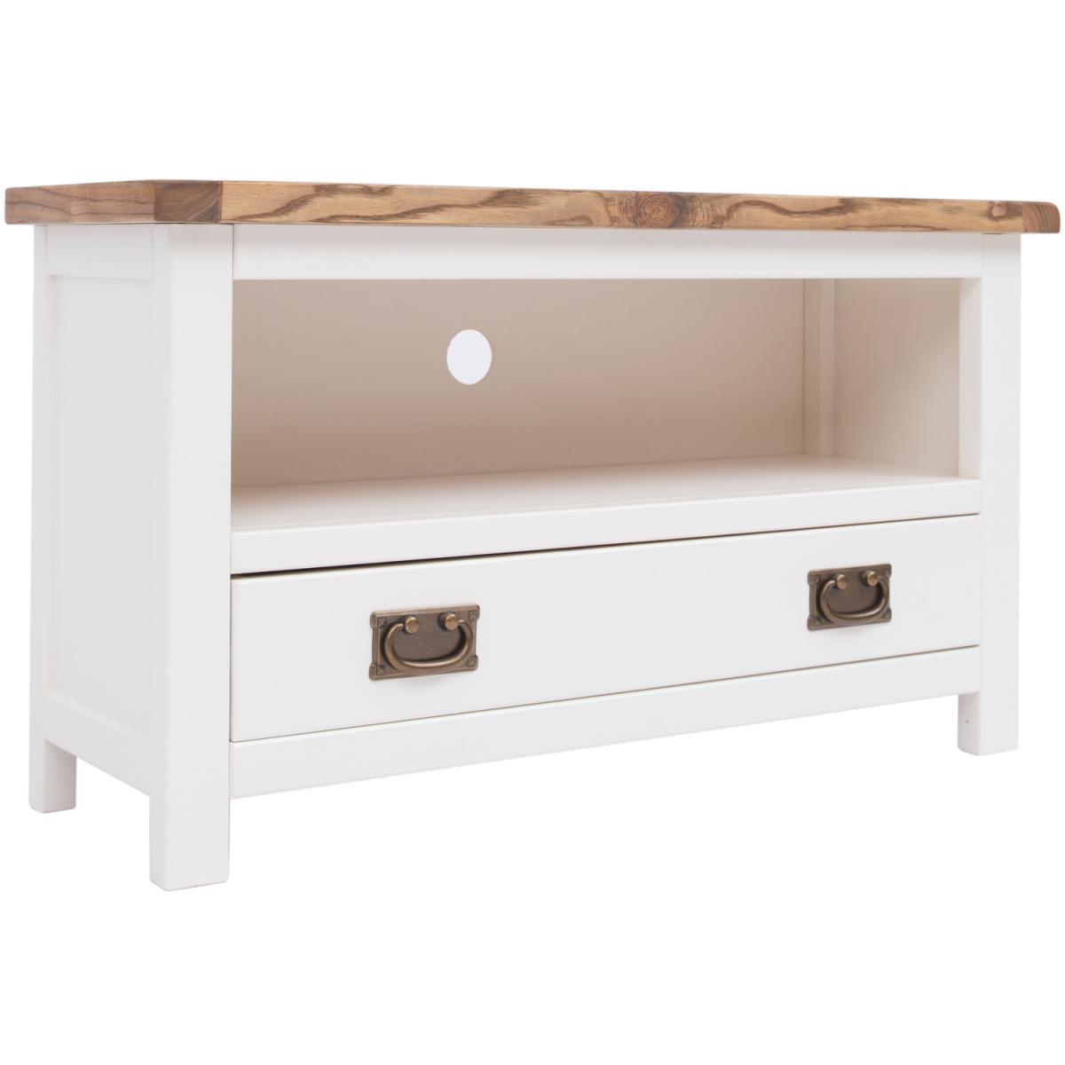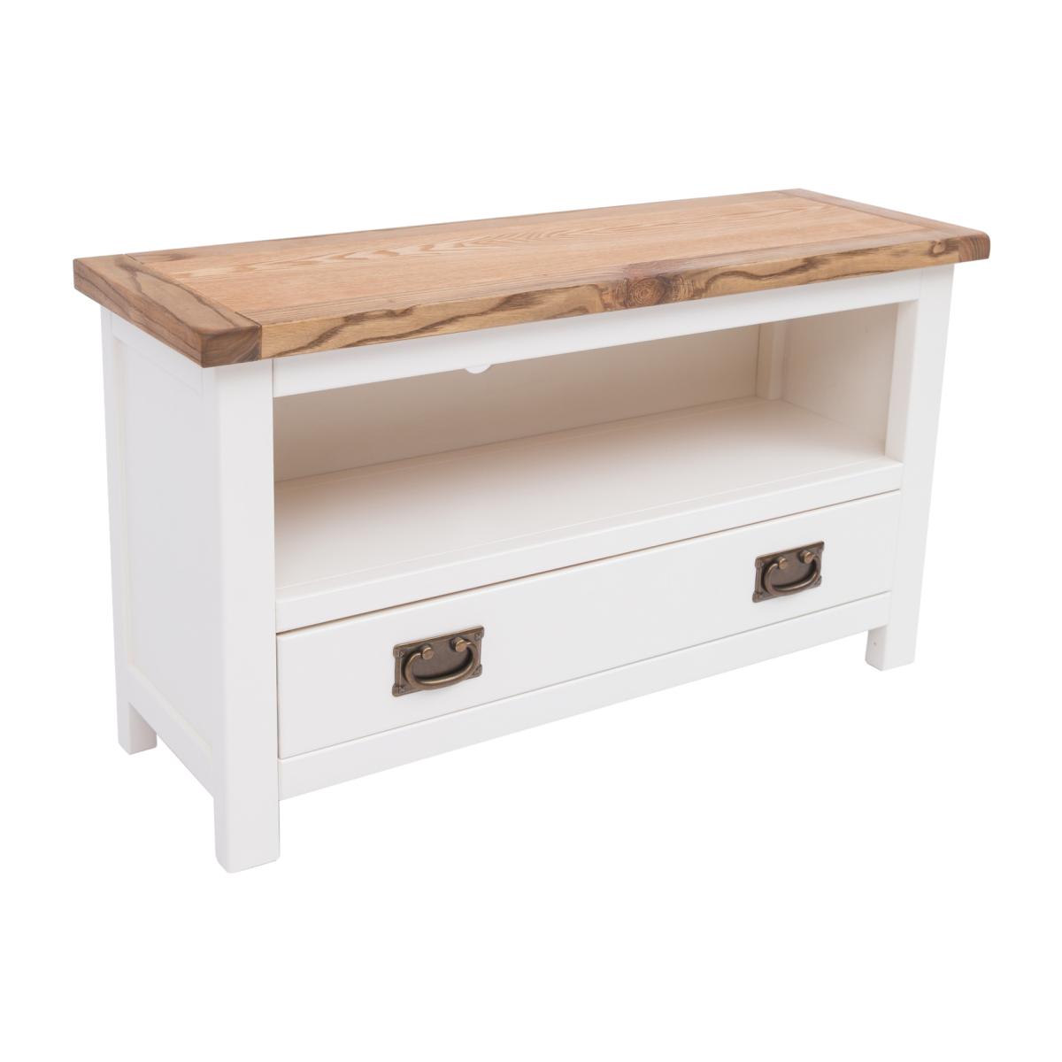 Our Lovere collection has a simple but pleasing design and is produced by our skilled craftsmen to the highest standards using responsibly sourced wood and veneers. All tops are made using a combination of hardwood and ash veneer and are carefully hand-waxed giving them a great look. The body is finished with high-quality eco-friendly water-base paint in an off-white colour. This 1 drawer TV unit comes with a wide drawer and an equipment storage space with cable management at the back. The handles are made of metal and come in 3 different design choices. These features combined with a simple construction for easy assembly make it a great value product to be taken home today.