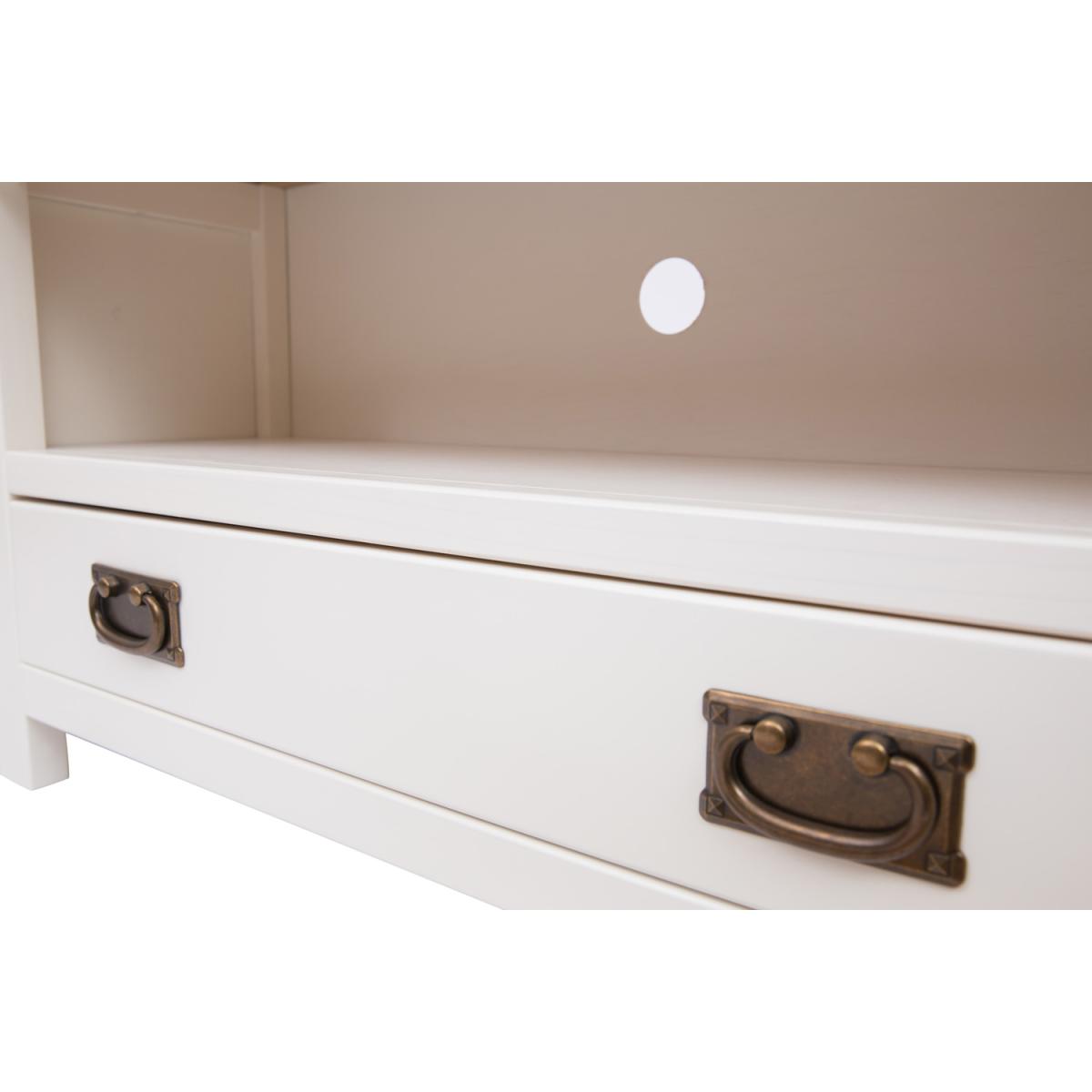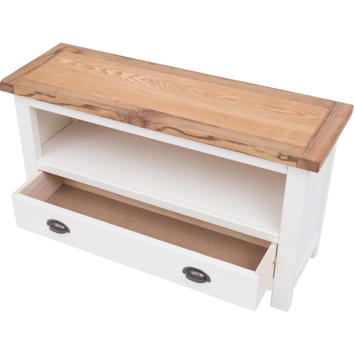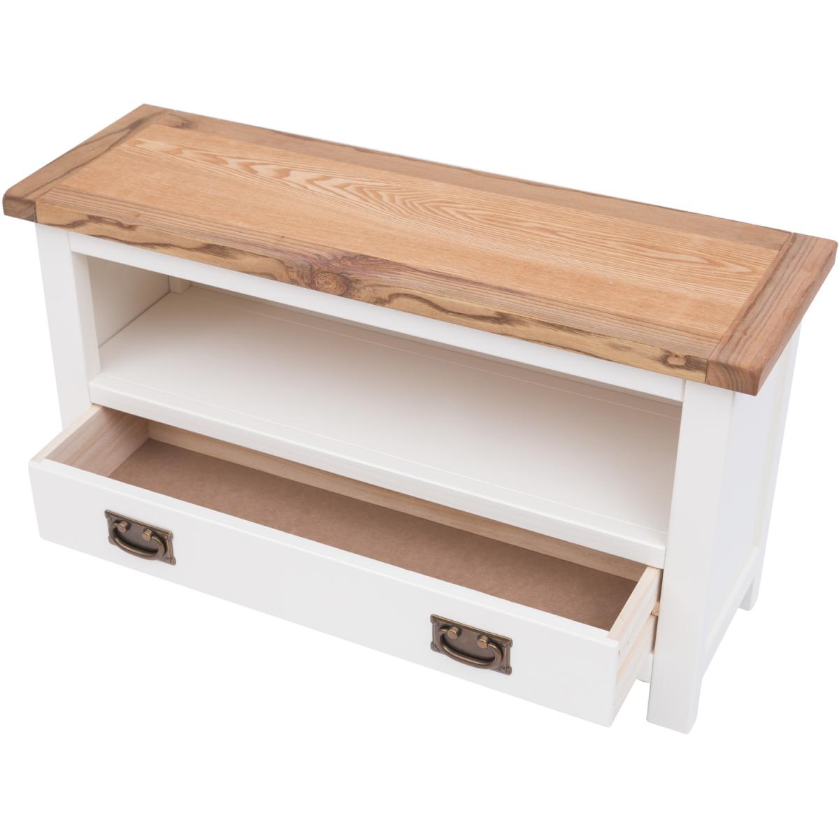 Our Lovere collection has a simple but pleasing design and is produced by our skilled craftsmen to the highest standards using responsibly sourced wood and veneers. All tops are made using a combination of hardwood and ash veneer and are carefully hand-waxed giving them a great look. The body is finished with high-quality eco-friendly water-base paint in an off-white colour. This 1 drawer TV unit comes with a wide drawer and an equipment storage space with cable management at the back. The handles are made of metal and come in 3 different design choices. These features combined with a simple construction for easy assembly make it a great value product to be taken home today.