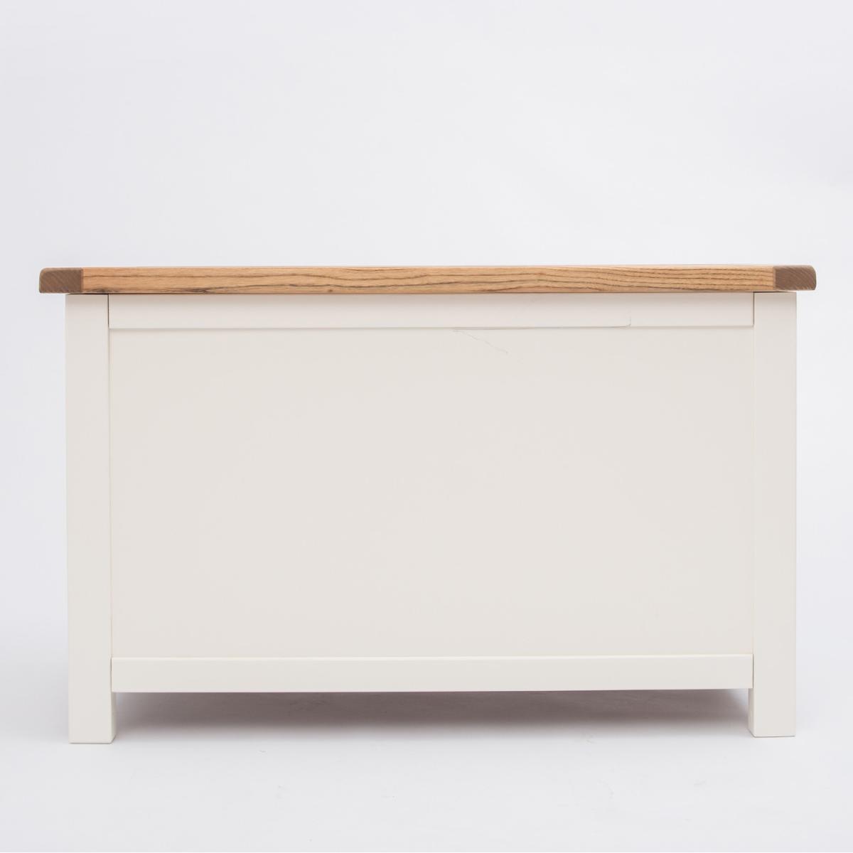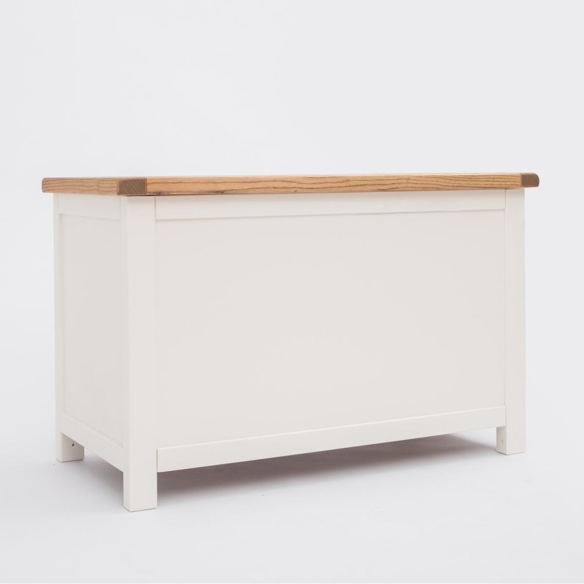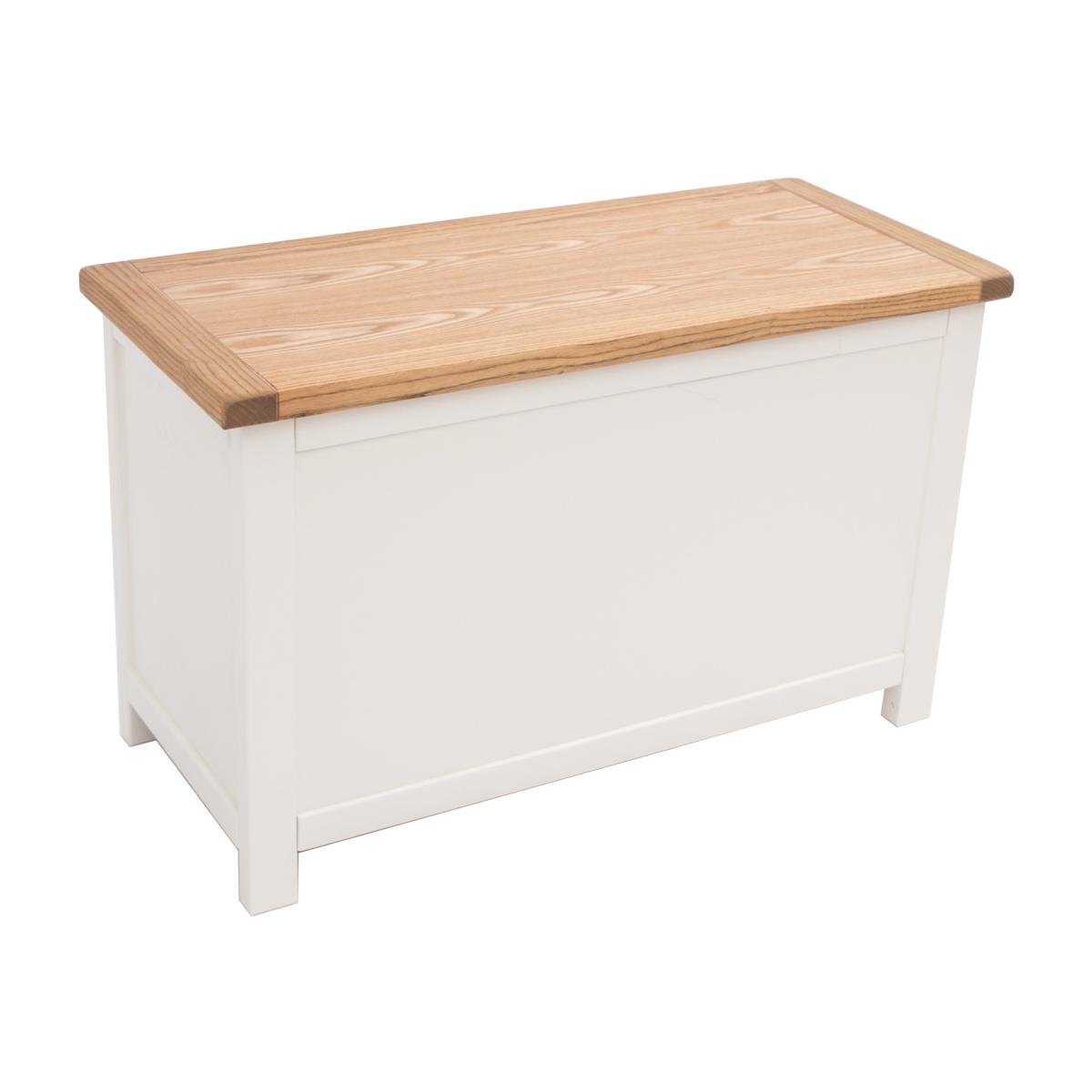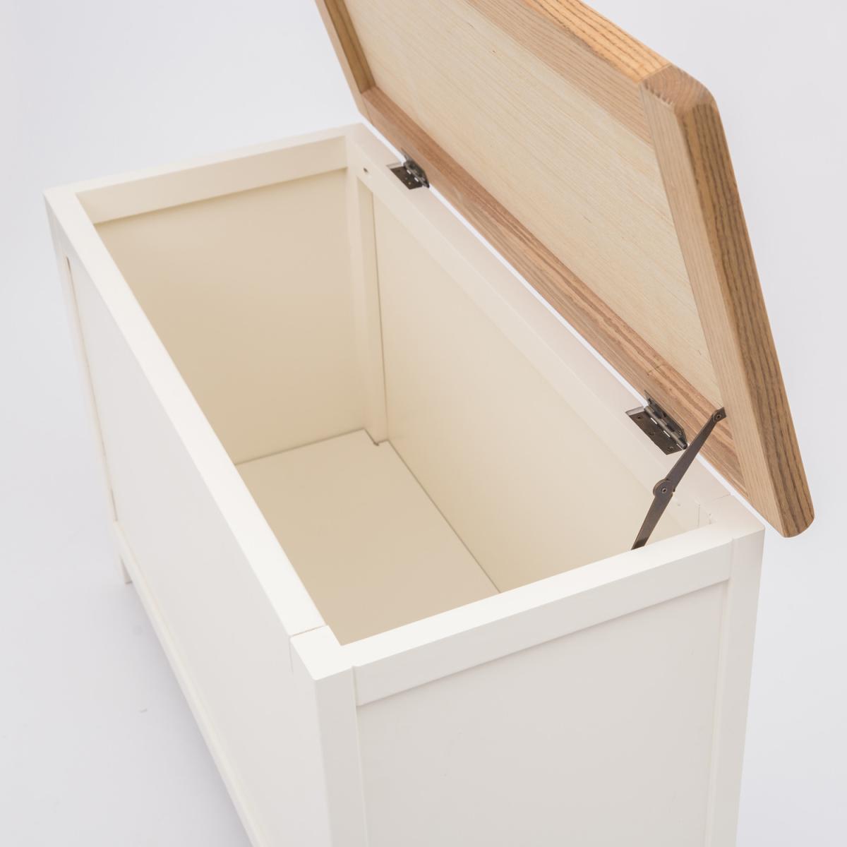 Our Lovere collection has a simple but pleasing design and is produced by our skilled craftsmen to the highest standards using responsibly sourced wood and veneers. All tops are made using a combination of hardwood and ash veneer and are carefully hand-waxed giving them a great look. The body is finished with high-quality eco-friendly water-base paint in an off-white colour. This storage ottoman has a large compartment and comes with a safety top holder as a safety feature. These attributes combined with a simple construction for easy assembly make it a great value product to be taken home today.