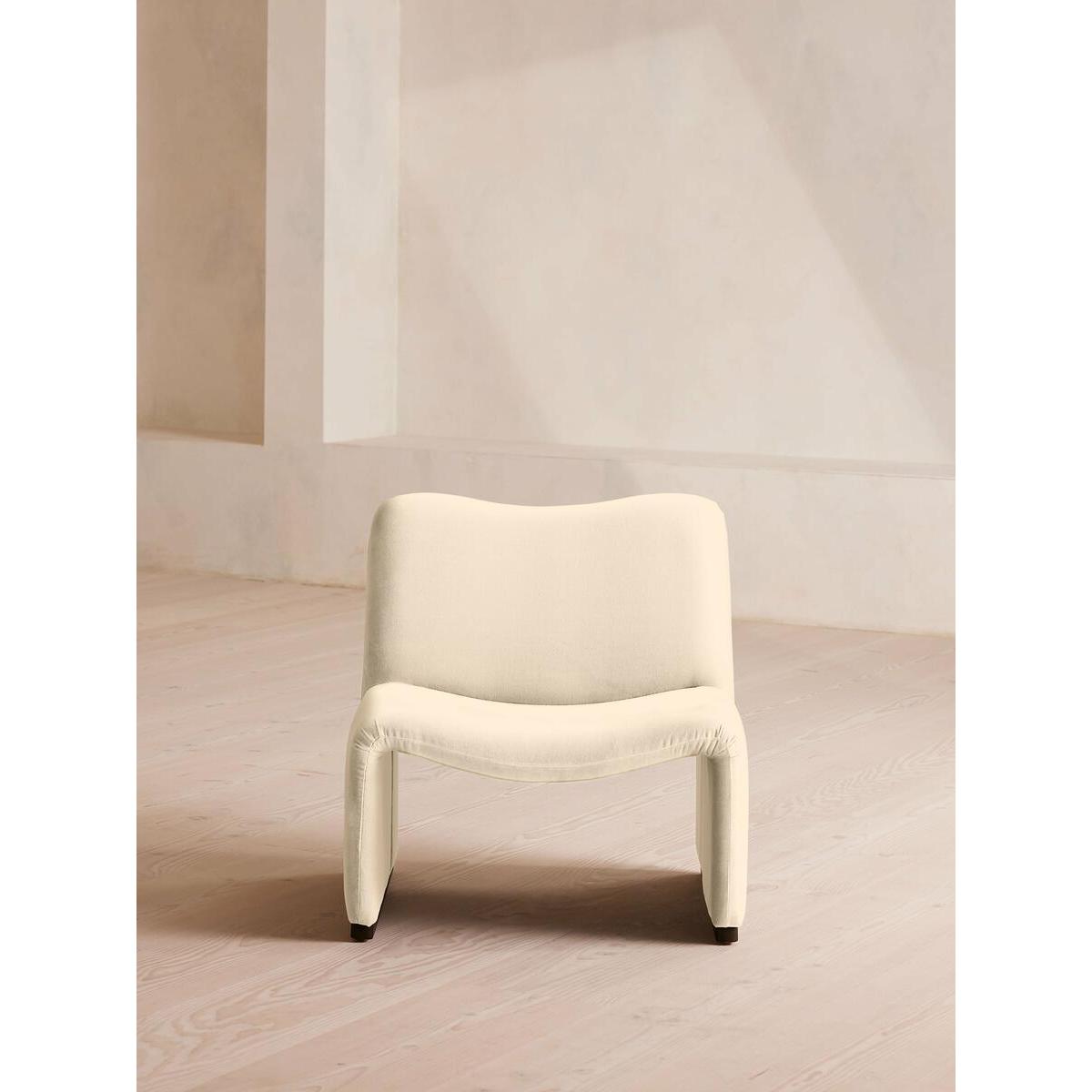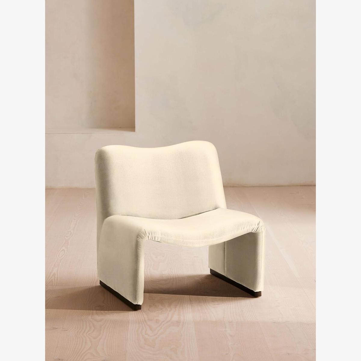 I’m a big fan of this porcelain-velvet chair for its clean lines and soft texture - it instantly lifts a room without overpowering. It works particularly well in contemporary or Scandi-inspired interiors, where its neutral tone can sit alongside light oak floors or black-metal accents. For styling, try pairing it with a low, round side table in dark wood or matt metal to echo the chair’s base. Add a slim cushion in a contrasting colour or a subtle geometric pattern to introduce interest, and balance the look with a floor lamp that has a slender profile.