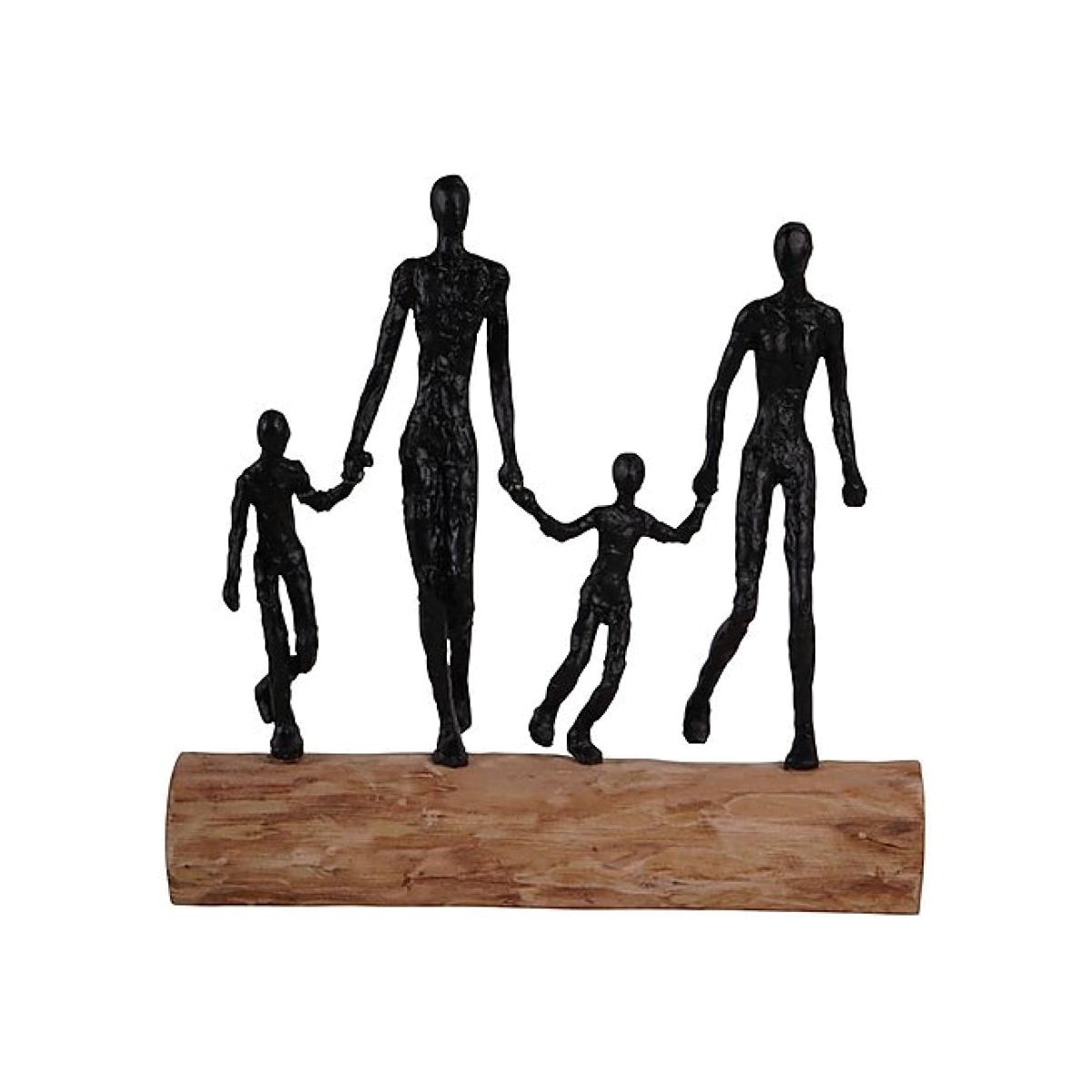 This understated sculpture of a loving family on a wooden stand is the perfect addition to a family home. Why you'll love it Bring some heart to your home with this loving family sculpture. Ideal for bedrooms and living rooms to create a harmonious feeling. Simple, minimalist style, crafted with precision and care. What you need to know Made from hardy iron and polyresin. Displayed on a rustic mango wood stand. To dust, wipe with a dry cloth. For indoor use only. Dimensions Width: 43 cm (17 inches) Depth: 9 cm (4 inches) Height: 42 cm (17 inches) Weight: 2.4 kg