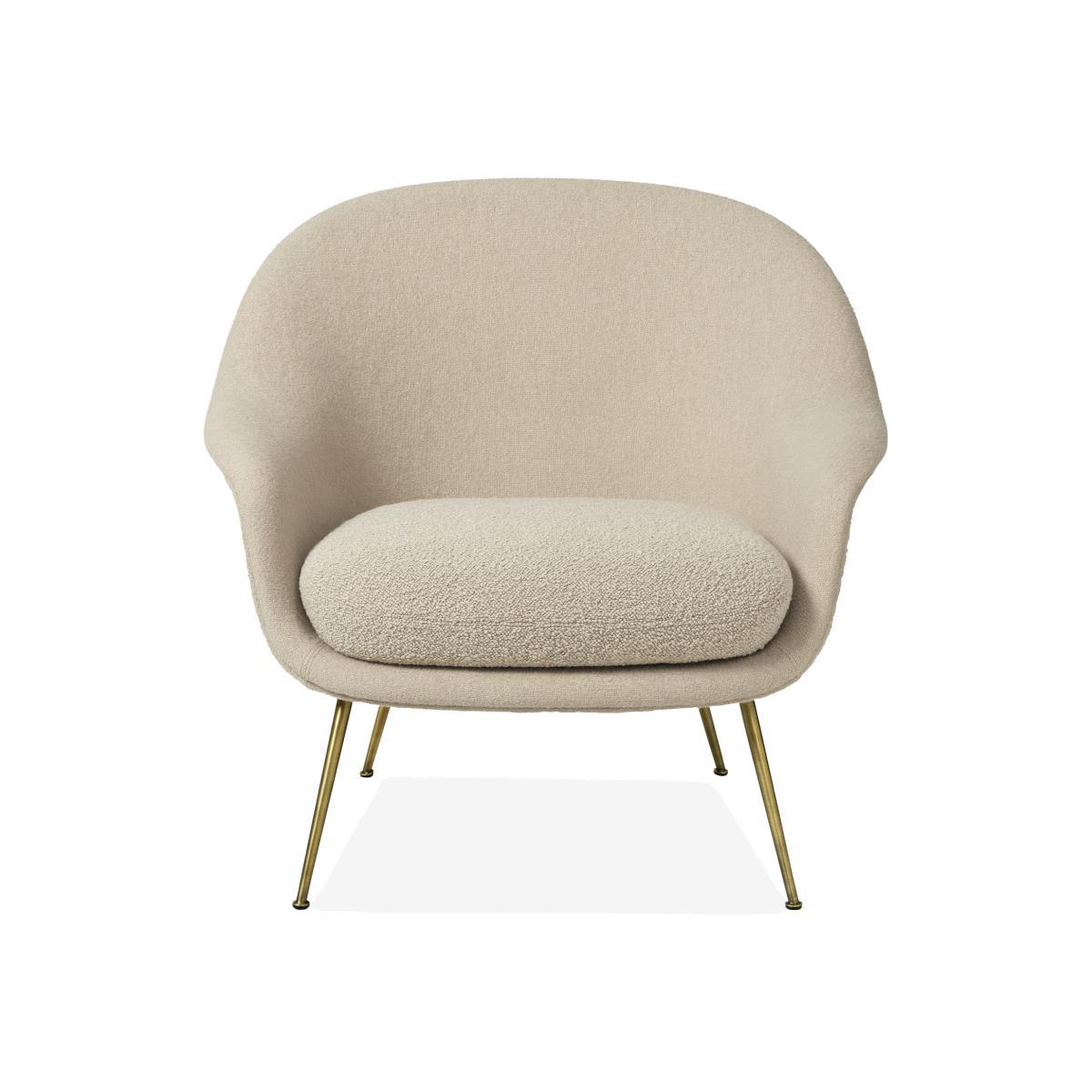 Designed by Gam Fratesi for GUBI, the low-backed Bat Lounge Chair embodies a perfect balance between craft, simplicity and functionalism. The chair's clean design is achieved with a fully moulded seat and armrest in one fluid piece, offering both sophistication and comfort. Carrying strong references to the interesting characteristics of bats, the seat is mounted on either a refined brass or black base, upholstered in a wide selection of fabrics, from velvets to cotton blends. Founded in 2006 by architects Stine Gam and Enrico Fratesi, the award-winning Copenhagen-based design house takes its creative drive from a fusion of tradition and renewal, drawing on both designers' experiences of Danish and Italian craft traditions. Renowned for applying an experimental approach to every project, Gam Fratesi awards each design with a visible historical context and unique, fresh aesthetic.
