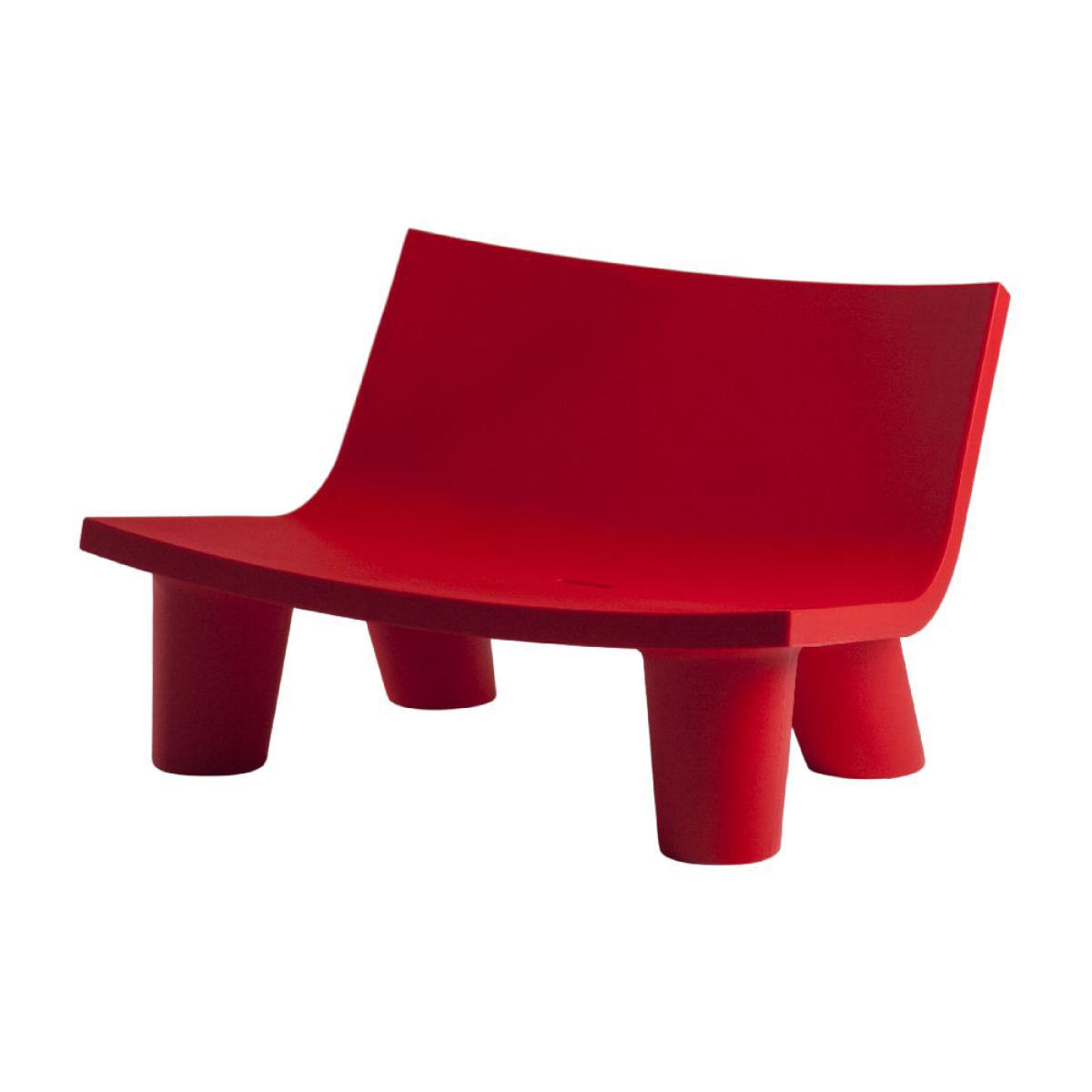Low Lita Love is the new sofa from Slide created by Paola Navone. The design has a thin, clean cut back and seat, contrasting with the four wide legs which support it and give it visual and practical solidity. The slightly curved profile of the base, on which the seat develops towards the sides, makes Low Lita Love particularly inviting and comfortable. Practical and easy to use in the open air in gardens and on terraces, it becomes the unquestioned protagonist in the home and in public areas. Low Lita Love, like all Slide products, is made in polyethylene for rotational moulding and is available in various colours.