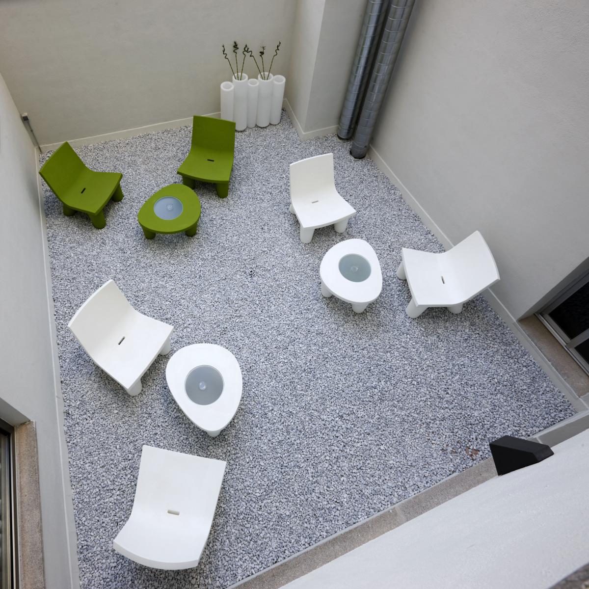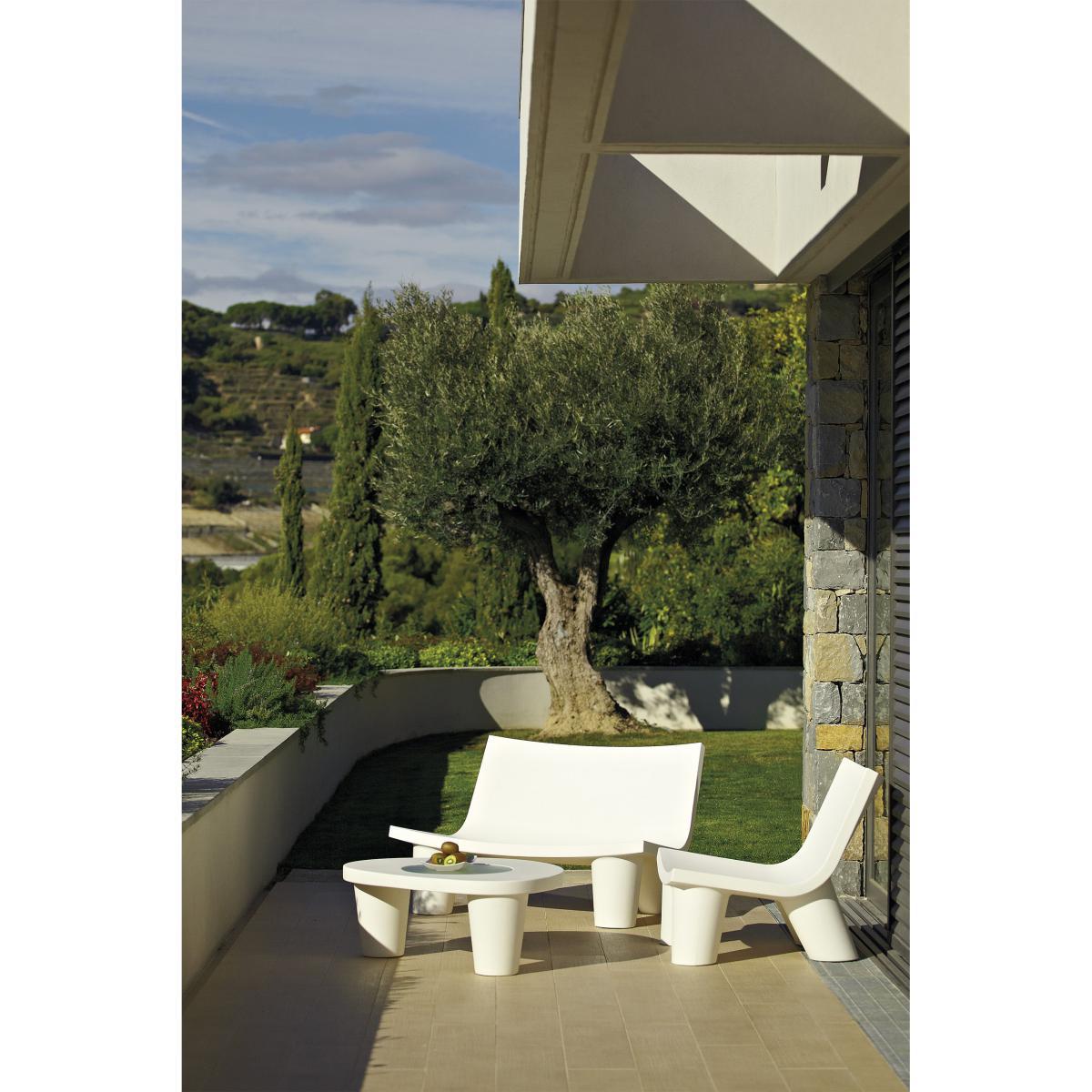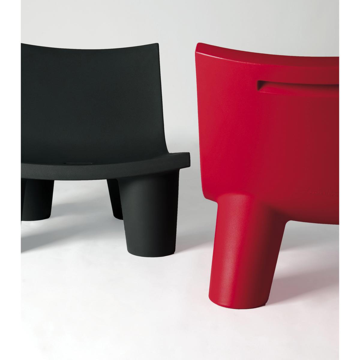 Low Lita is the fruit of the collaboration between Slide and the famous Italian designer Paola Navone. This low armchair with a " lounge " spirit is ideal to create an original relaxation place on its terrace, garden or living-room. Completely realized in polyethylene, this armchair is characterized by its original and playful legs which remind furniture for children. The round and massive feet, like wooden logs, contrast with the pure lines of the seat.