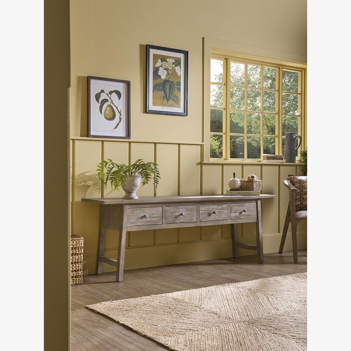 I’m a fan of this low console for its slim, farmhouse-inspired frame and handy shallow drawers - ideal for stashing keys, mail or small bits in a hallway or behind the sofa. The weathered wood finish sits equally well in coastal, Scandi or modern-rustic schemes, bringing just enough texture without overwhelming a light, airy palette. Styling tip: anchor a trio of simple prints or mirrors above, then layer a ceramic vase of foliage beside a neat stack of books. Add a woven basket or two underneath for extra storage and visual balance. Keep accessories deliberately sparse to let the console’s finish and form do the talking.