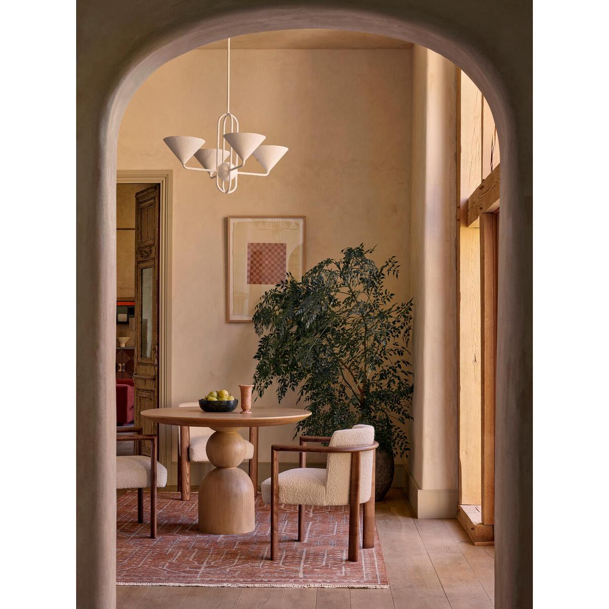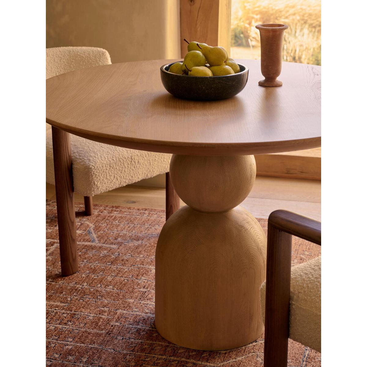 I’m a fan of this round Lowden table for its clean lines and sculptural base - it slots straight into modern, Scandi-inspired or neutral schemes without fuss. It works equally well with contrasting textures (think leather chairs or a chunky wool rug) and simple tableware. To style, keep centrepieces minimal: a shallow ceramic bowl of fruit or a single stem in a small vase lets the table’s form really stand out, while a woven runner adds warmth without clutter.