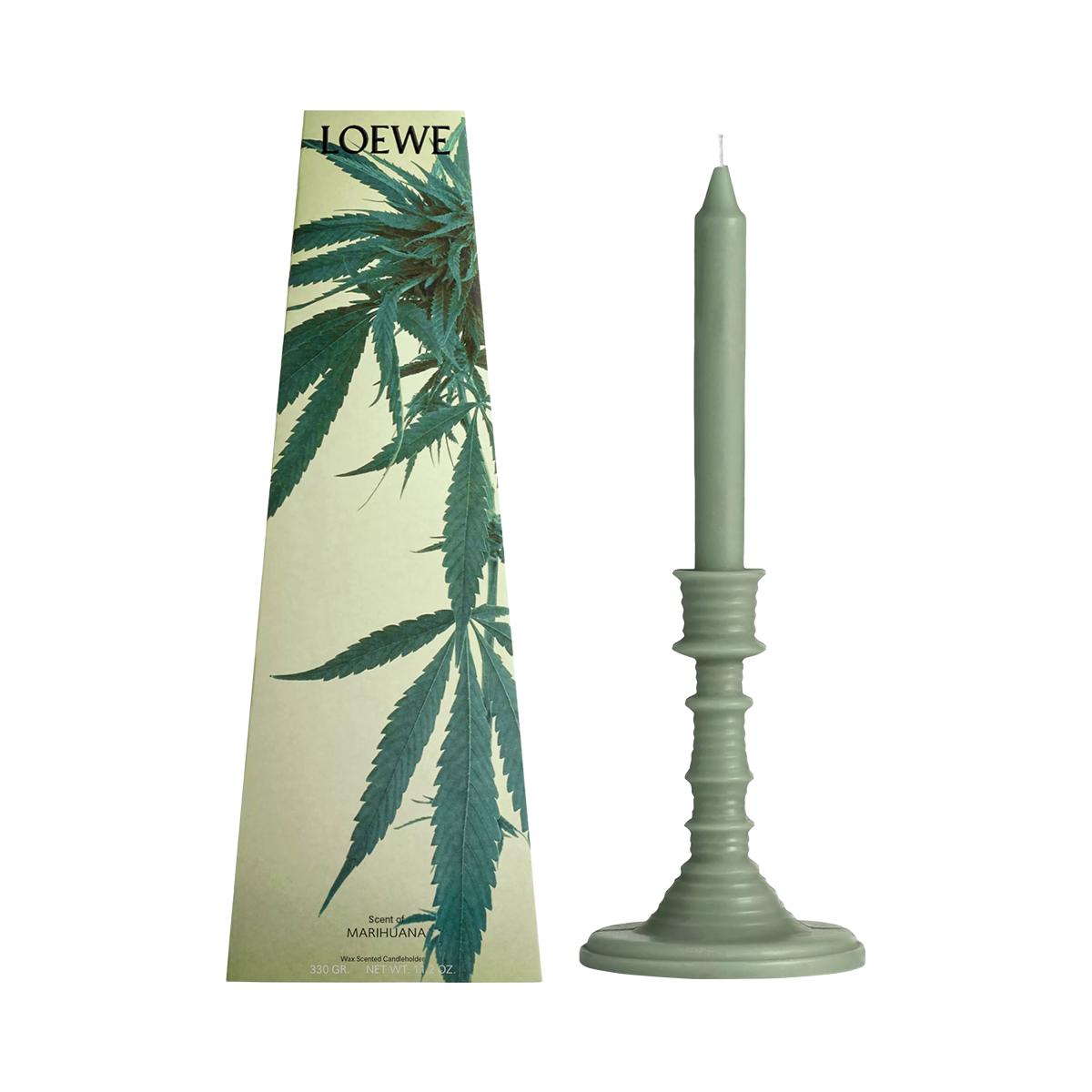 A candlestick-shaped candle, crafted in wax, with Scent of Marihuana essence. The Scent of Marihuana wax candle holder captures a herbal scent that evokes the soothing aroma of the Sativa Herb. It reveals delicate woody notes once lit. This candlestick-shaped candle has a single cotton wick and should be placed on a heatproof surface, such as our terracotta base intended for this use, available to buy separately. All LOEWE Home Scents items are olfactory creations that highlight nature’s most natural and pure scents. Made in Spain. Due to their handcrafted nature, no two Home Scents Wax Candleholders are exactly the same.
