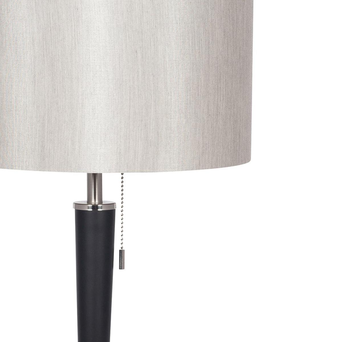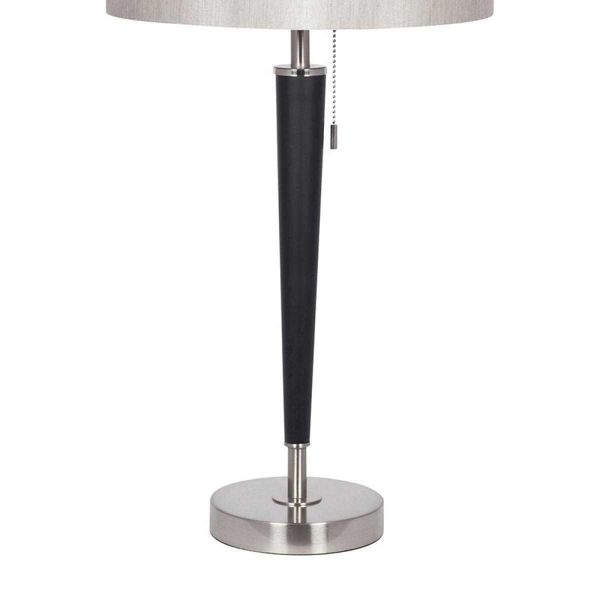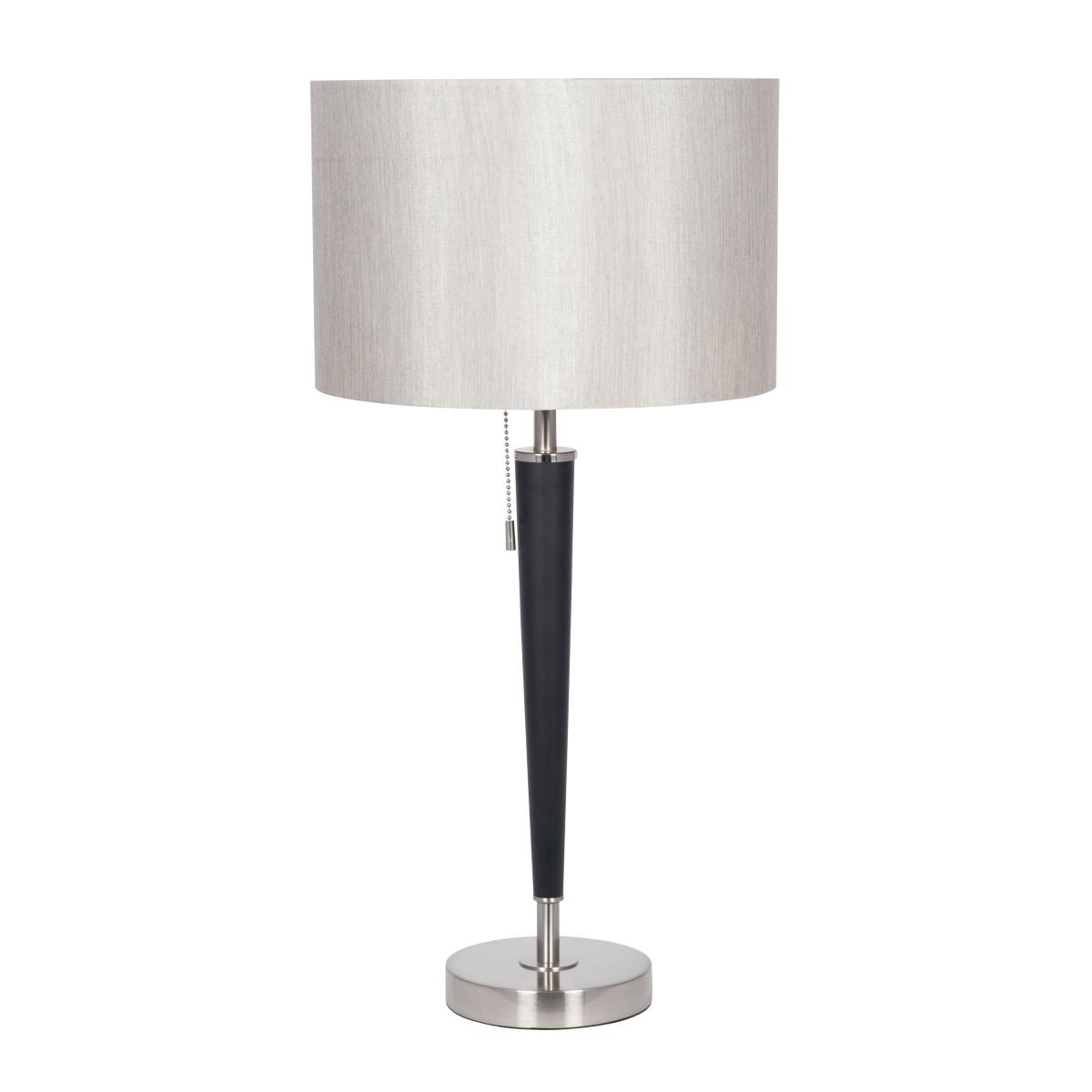 * Requires 1 x E27 Bulbs (Not included)* Sleek and modern contemporary design. * Features a matt black tapered stem with brushed silver details. * Comes with a slubby grey faux silk shade and pull switch for added functionality. The Lowry Metal Table Lamp exudes sleek and modern contemporary style, resembling hotel chic with its matt black tapered stem and contrasting brushed silver details. Complete with a slubby grey faux silk shade and pull switch for added functionality, it's available in floor lamp and wall light options.