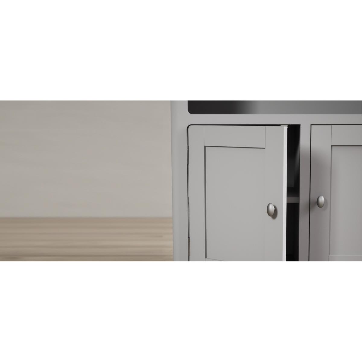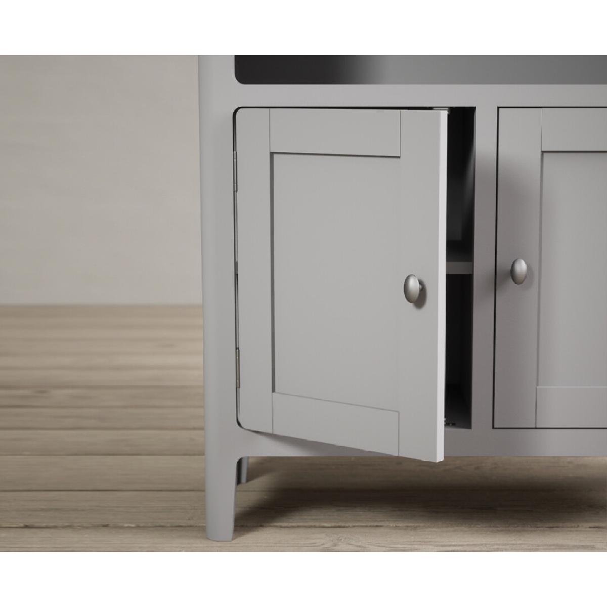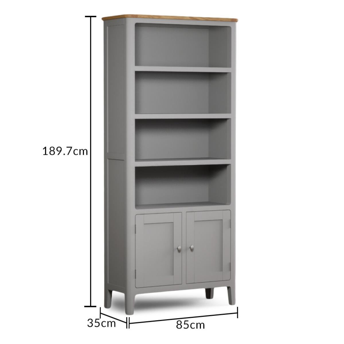 The Loxton Oak and Light Grey Painted Tall Bookcase is crafted from grey painted solid hardwood, with a solid oak top, sturdy solid shelves and a cupboard.