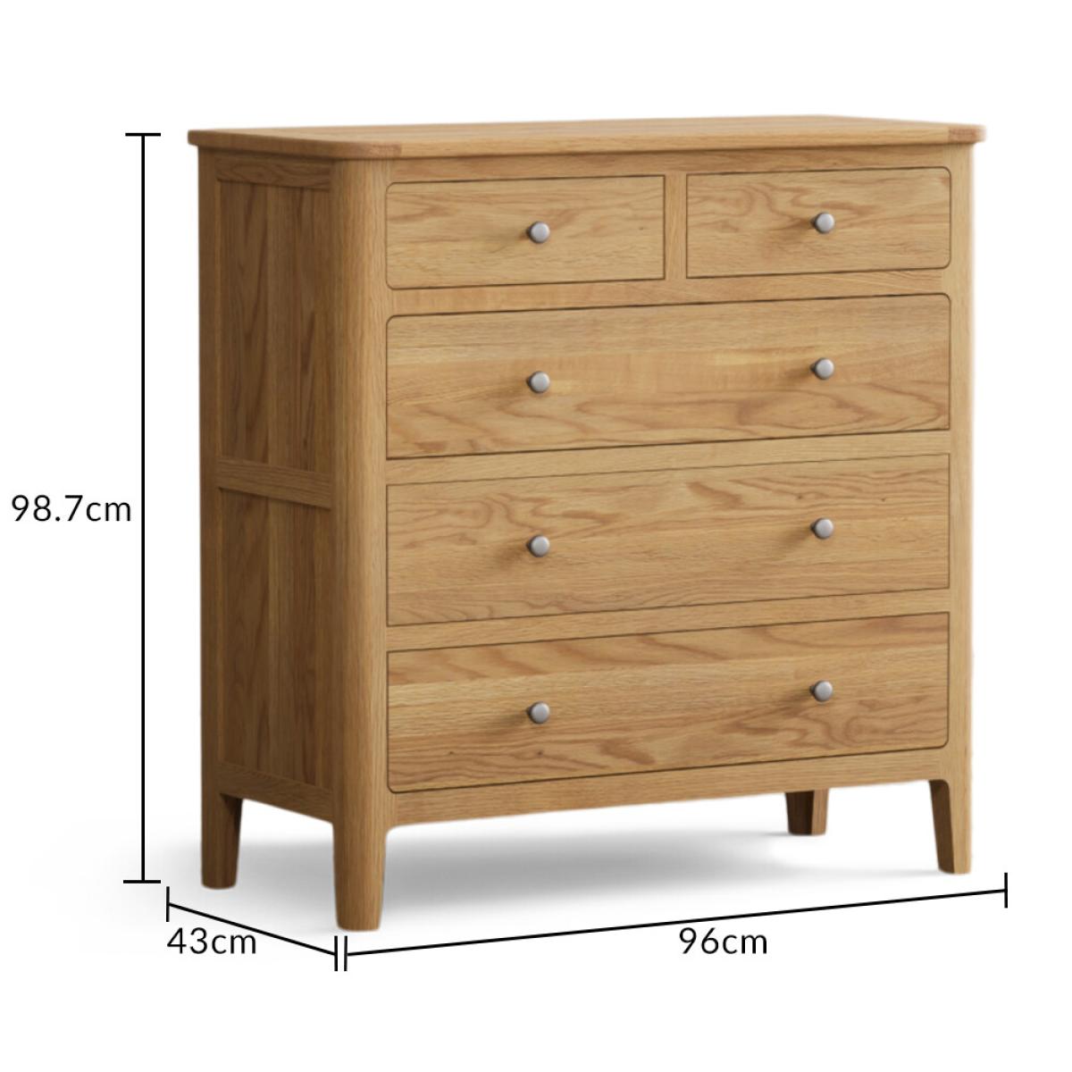 Loxton Solid Oak 2 Over 3 Chest of drawers