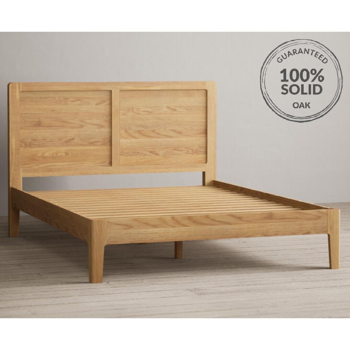 The Loxton Solid Oak Double Bed is made from 100% solid oak and finished with a nourishing wax, with a high headboard and sturdy slats.