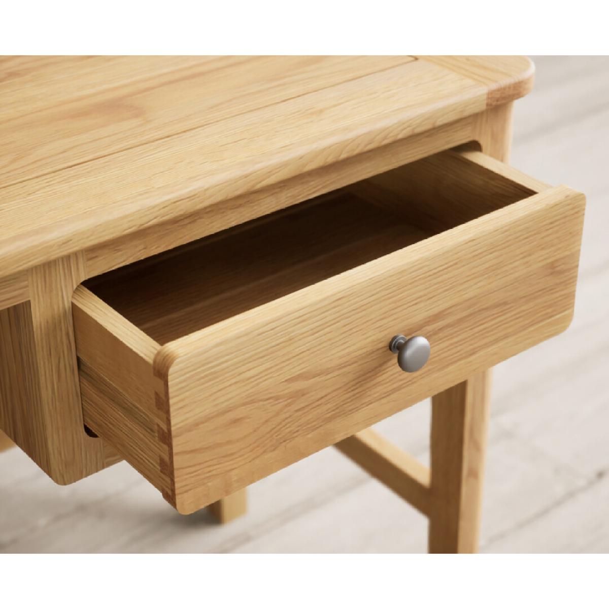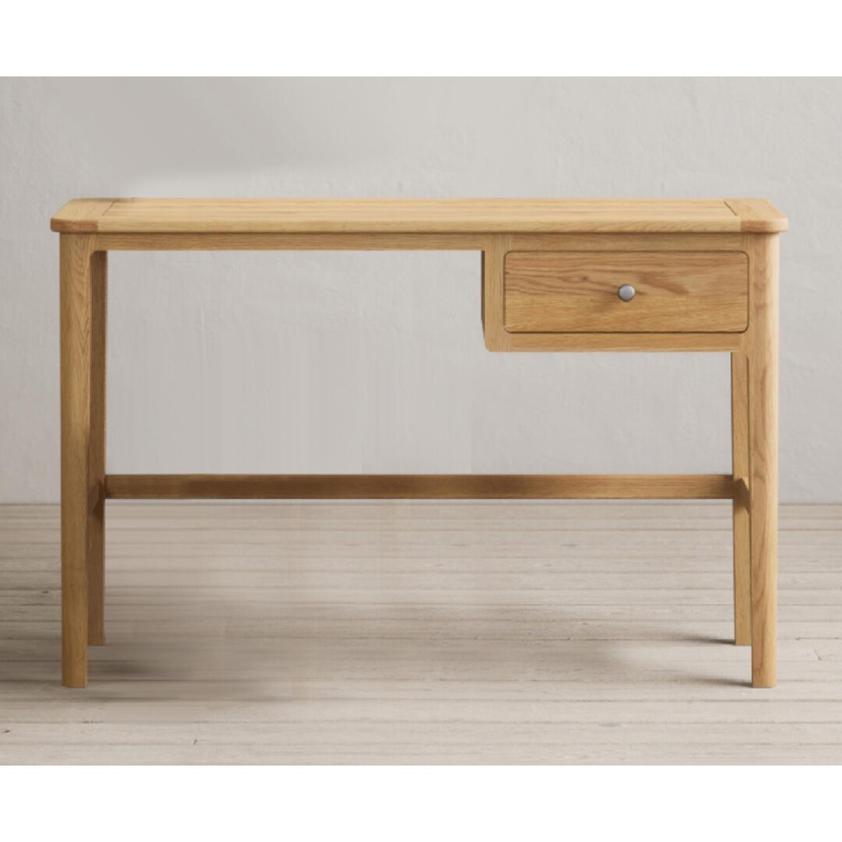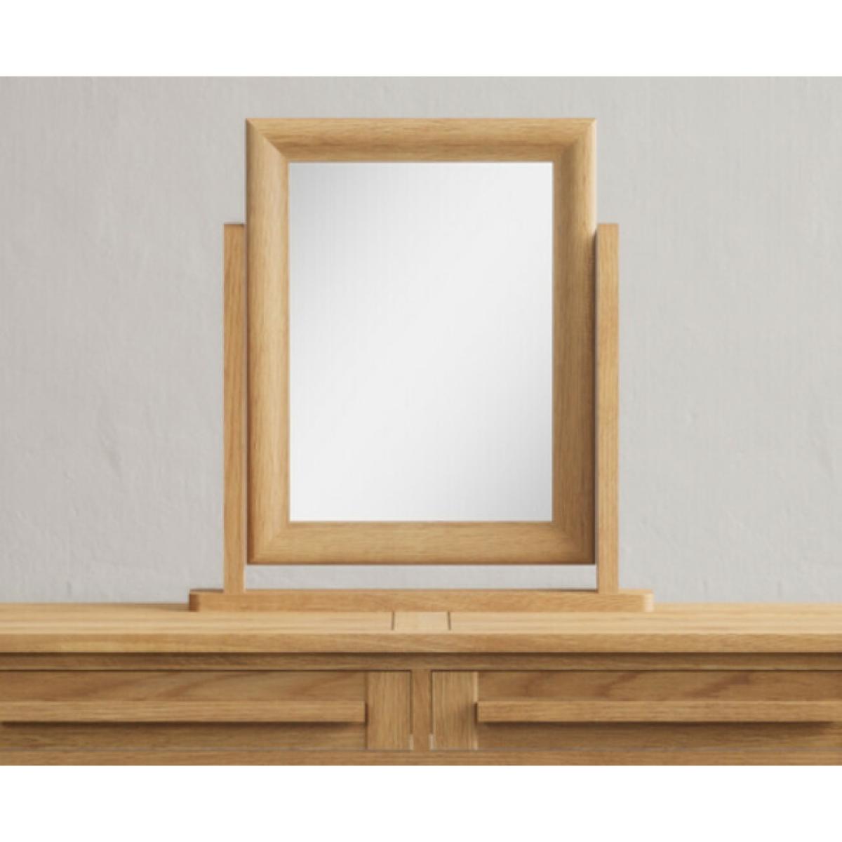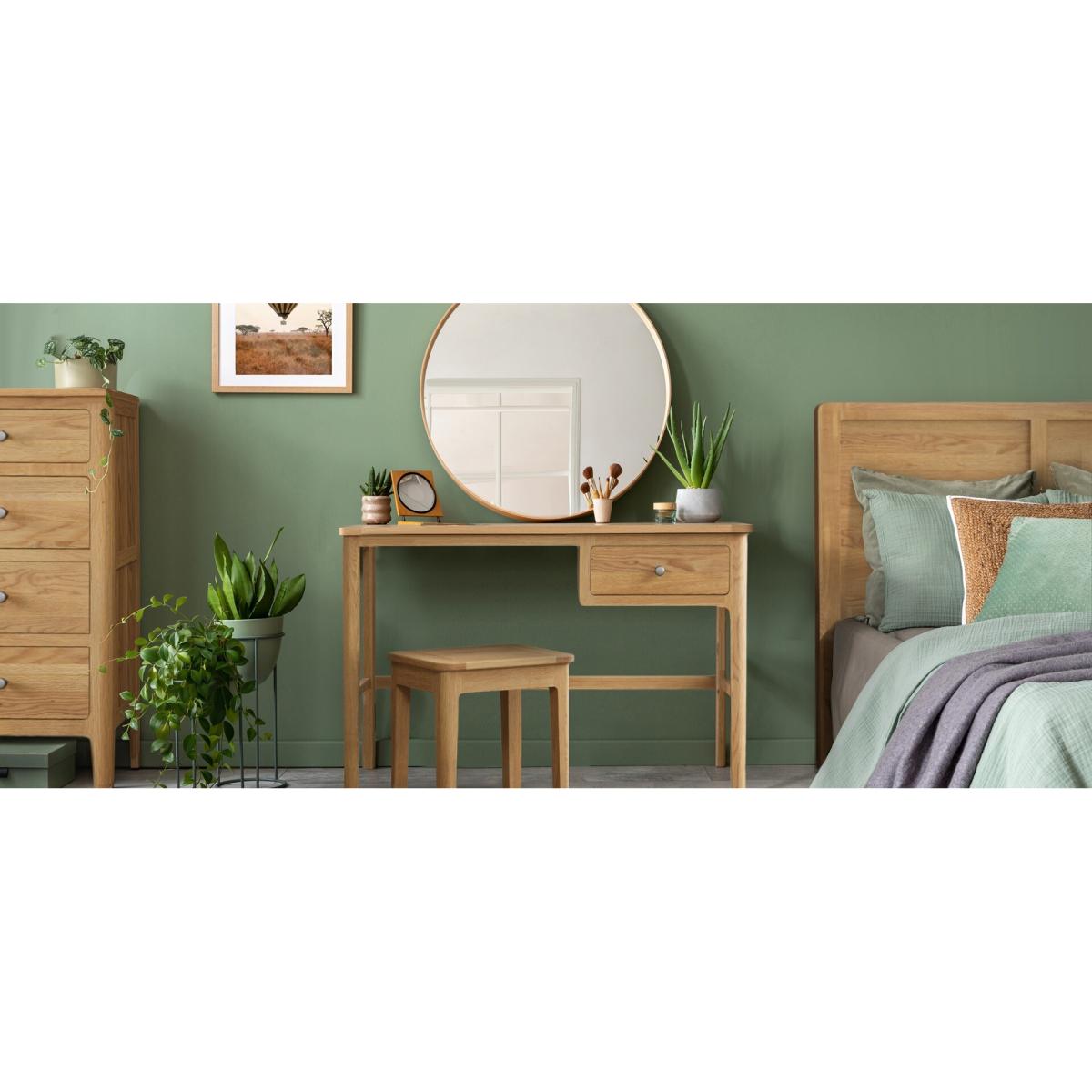 The Loxton Solid Oak Dressing Table Set is crafted from 100% solid oak with a waxed finish and features a dressing table with Dovetail drawer, oak dressing table stool and oak dressing table mirror.