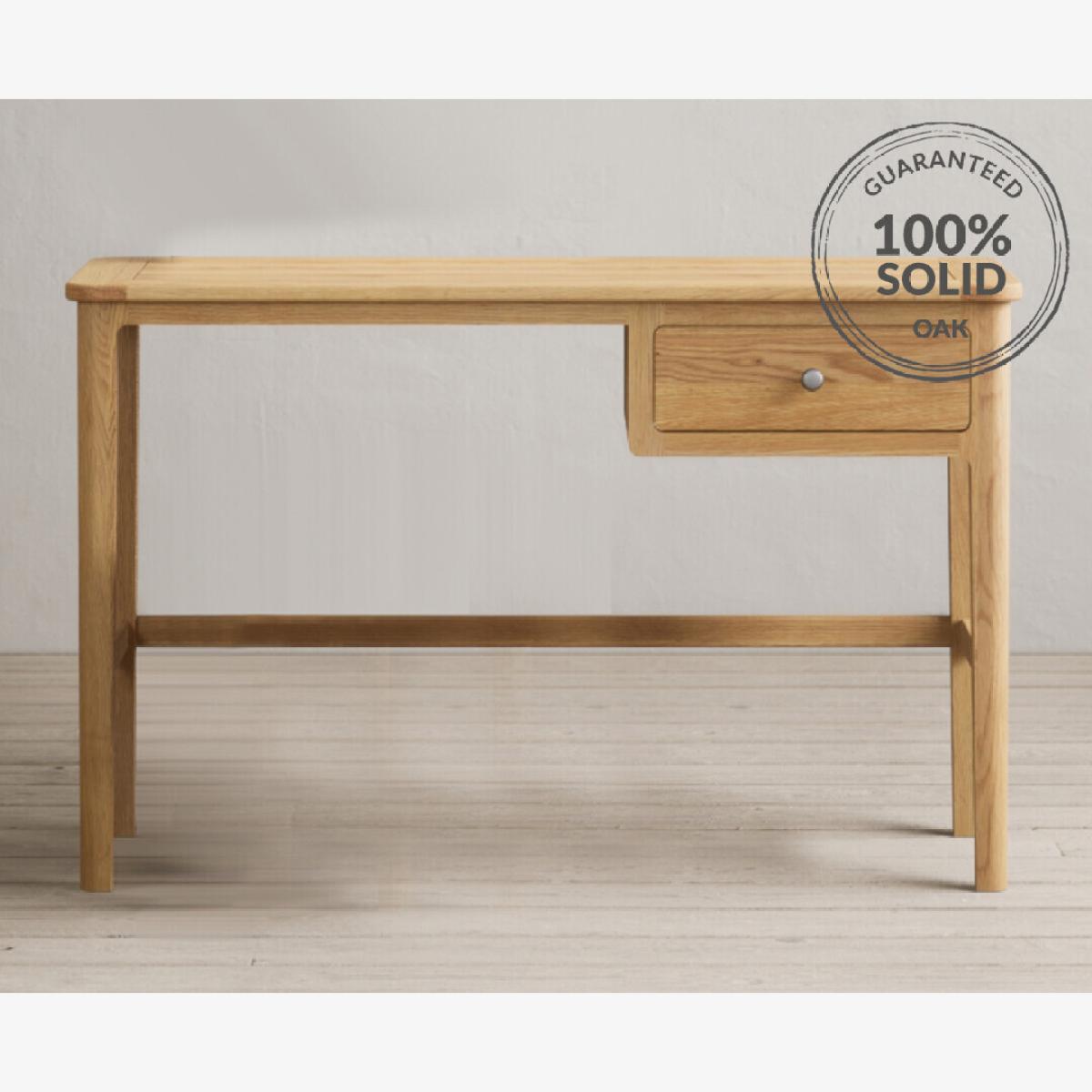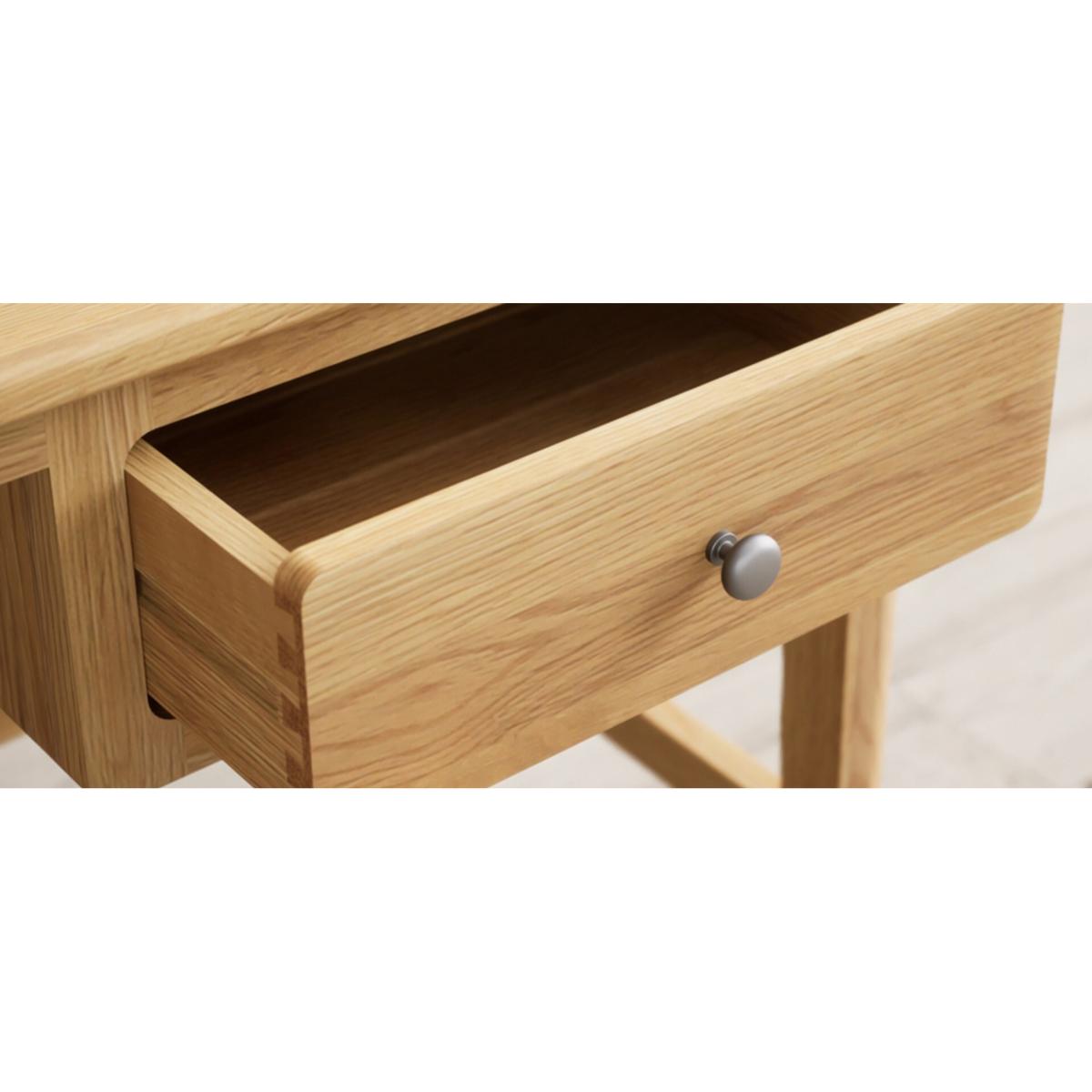 The Loxton Solid Oak Dressing Table is crafted from 100% solid oak with a waxed finish and features a Dovetail drawer with a metal knob handle.