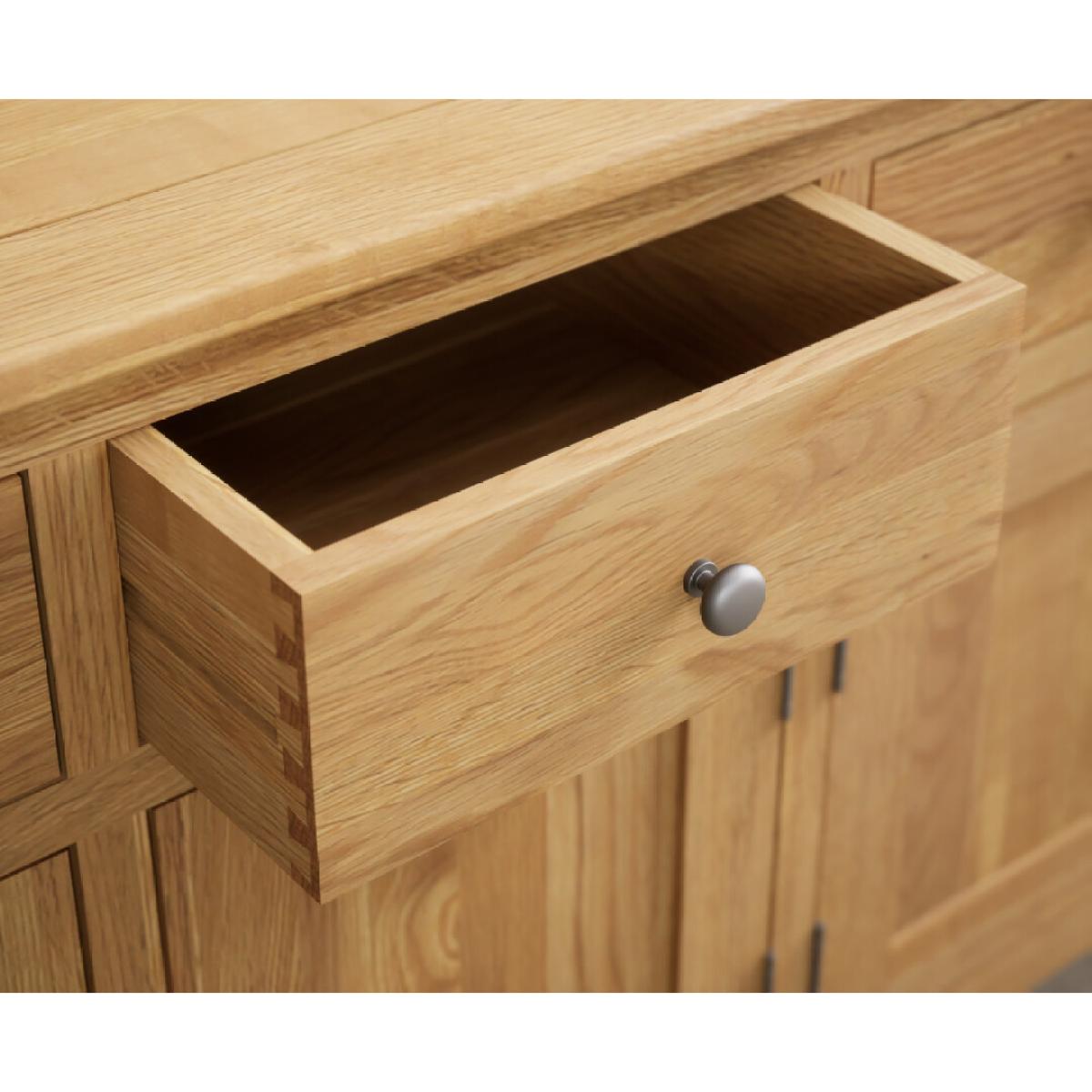 The Loxton Solid Oak Extra Large Sideboard is crafted from 100% solid oak with a waxed finish, with Dovetail drawers with solid backs and bases.