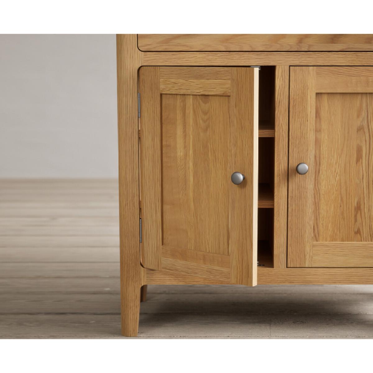 The Loxton Solid Oak Hallway Sideboard is crafted from 100% solid oak, with a waxed finish and wide Dovetail drawer complete with metal knob handles.