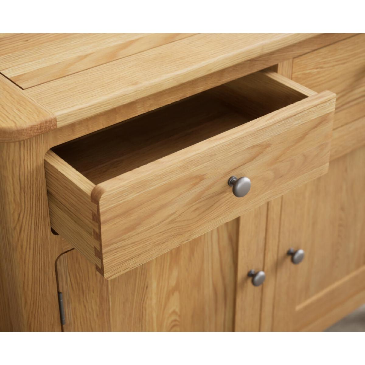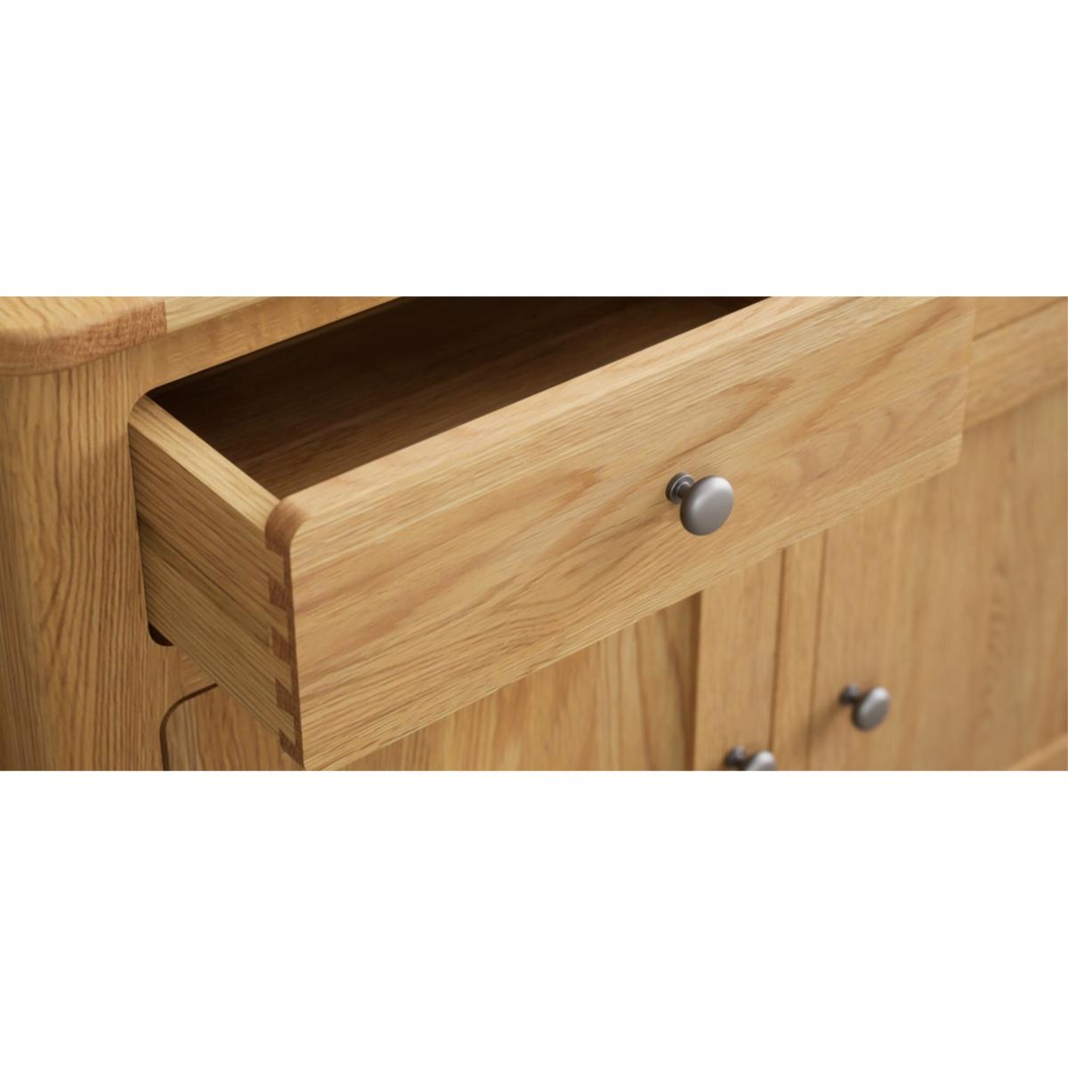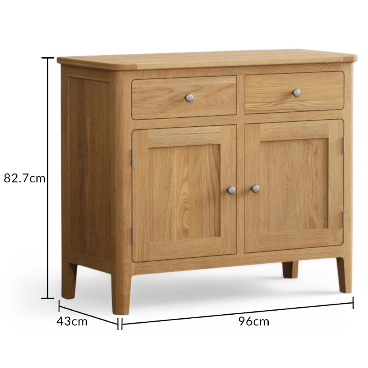 The Loxton Solid Oak Small Sideboard is crafted from 100% solid oak with a waxed finish and features two cupboards and two Dovetail drawers.