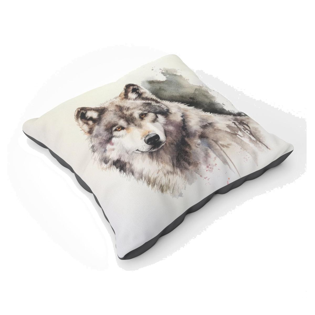 Loyal Wolf Watercolour Floor Cushion - Neutral