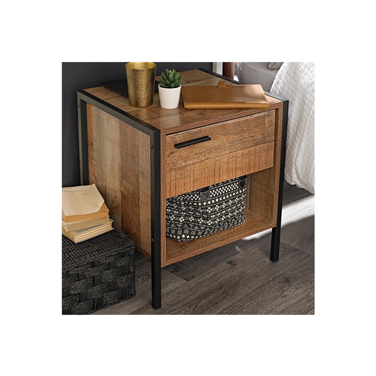 LPD 1 Drawer Bedside Table in Distressed Oak Effect - Industrial Style