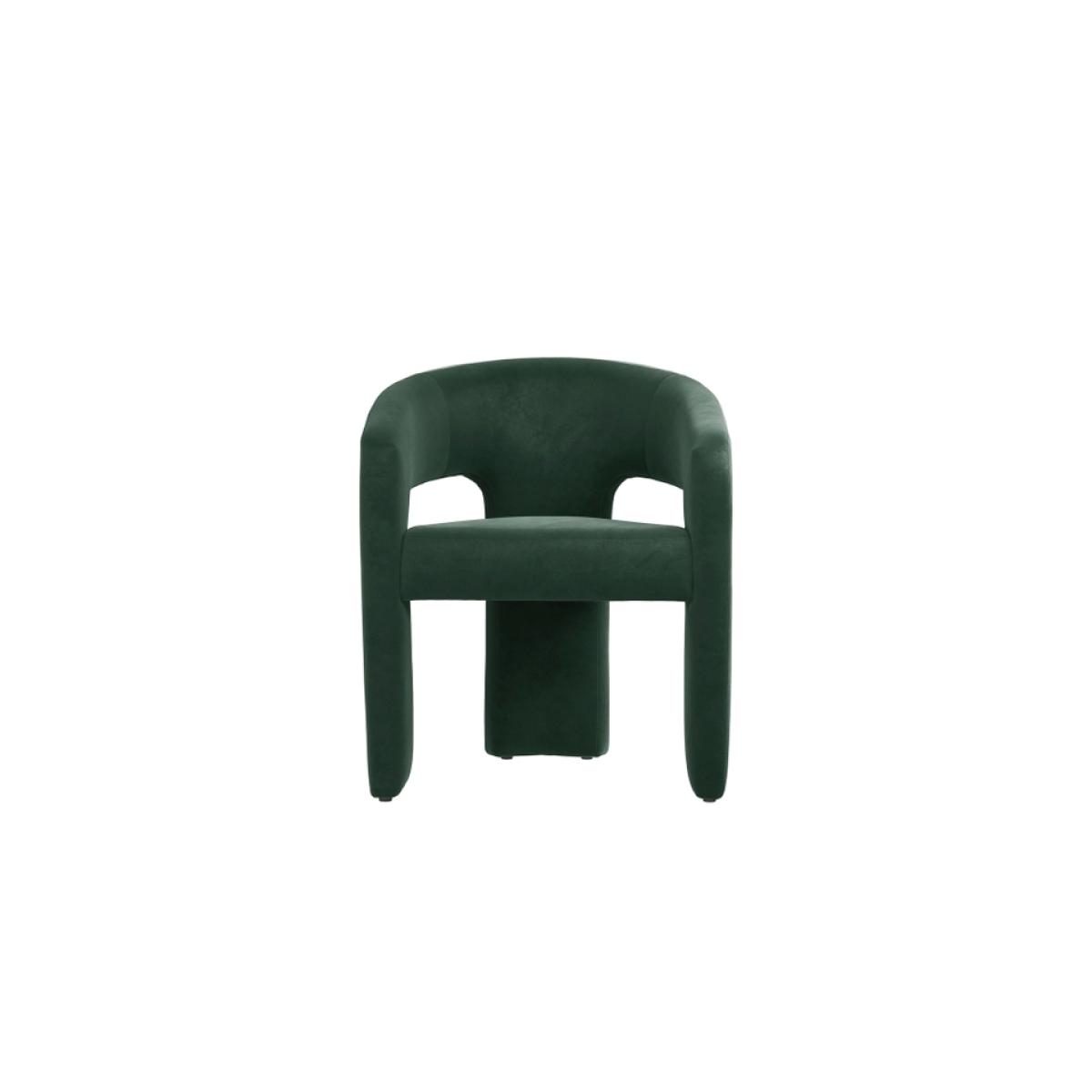 I love this green dining chair for its rich, forest-inspired hue, which adds a touch of sophistication and colour depth to a variety of interiors. It works particularly well in contemporary or mid-century modern spaces where bold accents are celebrated, but it can also bring a refreshing contrast in more neutral, minimal settings. When styling, consider pairing it with natural wood or matte black finishes for a modern look, or mix with soft textiles and velvet cushions for a more luxe feel. Its rounded, enveloping shape makes it not only stylish but also comfortable, making it an excellent choice for both dining rooms and more relaxed seating zones.