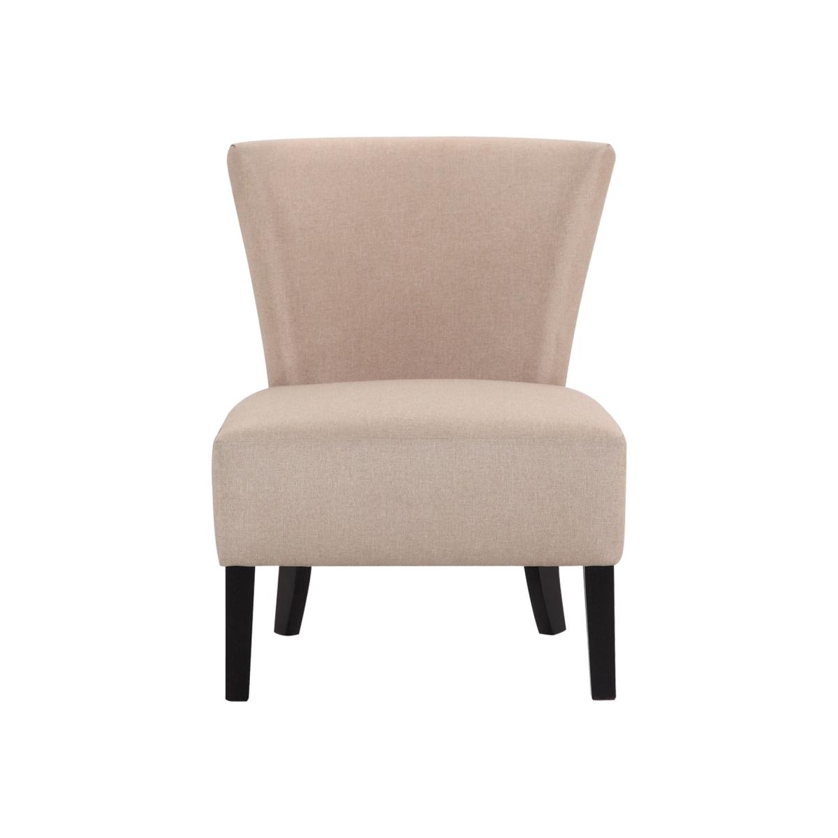 Dimensions. H 77.5 x W 60 x D 75 cm. Features. Contemporary style chair Upholstered in sand coloured linen. Also available in duck egg blue. Sold as a single item Leg assembly required..
