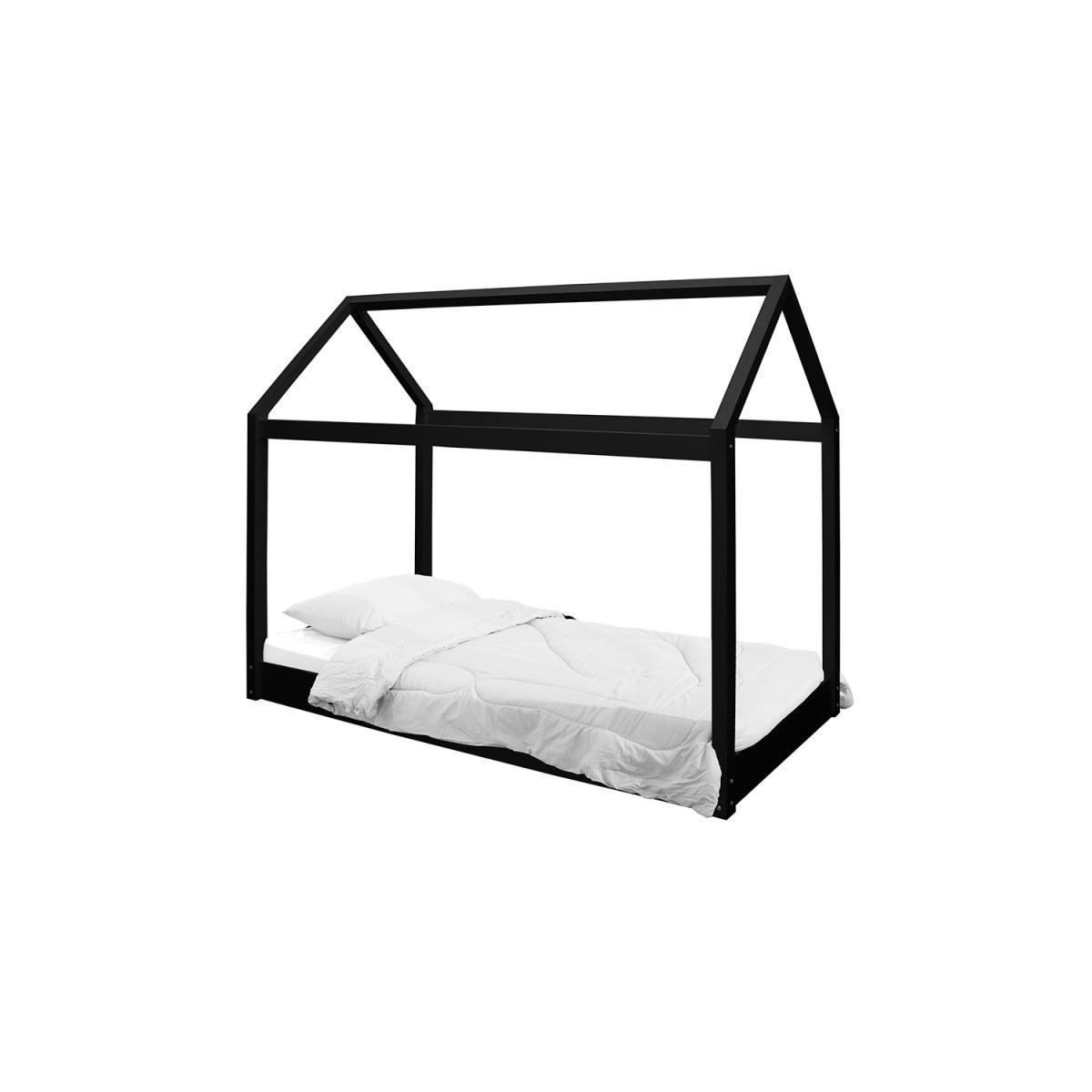 Dimensions W198.6cm x D99.6cm x H160.5cm Features. Finished in a contemporary matte black Fun house design for kids bedrooms. Use the frame to hang decorations!Assembly required..